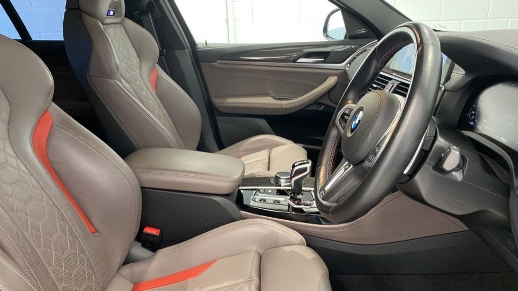 BMW X4 M Competition 3.0 на 21-дюймовых дисках - M Light с V-образными спицами в стиле 765 M двухцветного черного цвета со смешанными шинами. Круиз-контроль с функцией торможения и ограничения скорости. Акустическая система - Harman Kardon. PDC - Контроль парковочной дистанции - спереди и сзади. Помощник по парковке. Камера помощи при движении задним ходом. Электрическая регулировка переднего сиденья с памятью. Сиденья - Передние с подогревом. Кнопка Start-Stop с функцией комфортного запуска двигателя без ключа и кнопкой автоматического отключения Start-Stop.