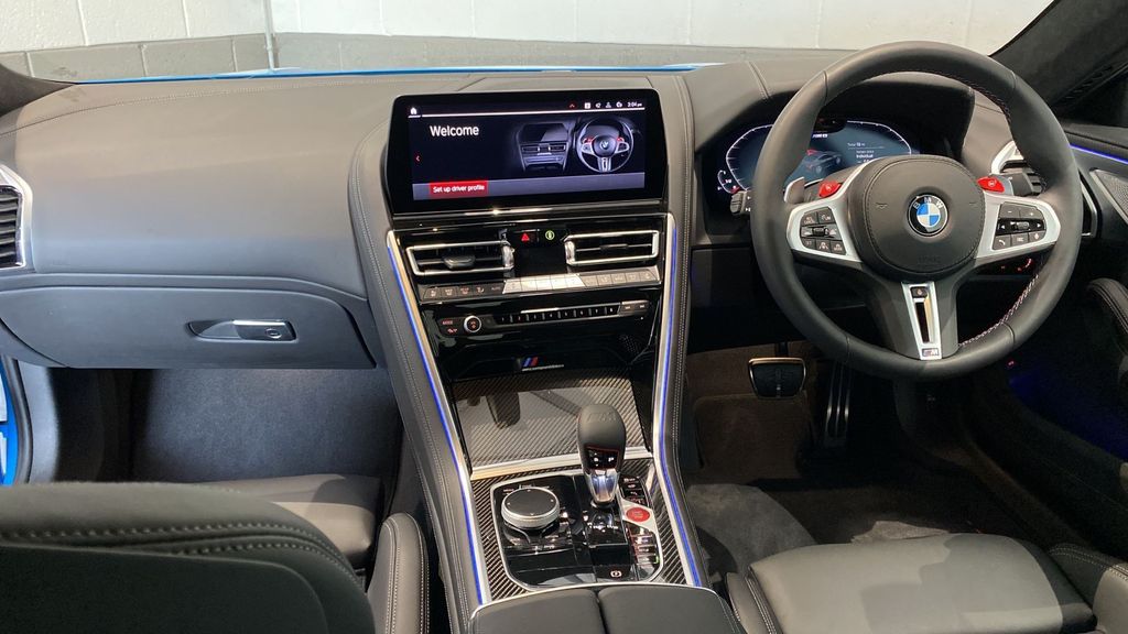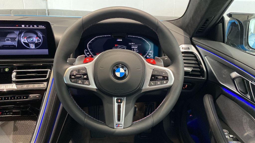 BMW M8 Competition 4.4 на 20-дюймовых дисках - M Light со звездчатыми спицами в стиле 813 M двухцветные со смешанными шинами. Круиз-контроль с функцией торможения. Аудиосистема объемного звучания Harman-Kardon. Помощник по парковке Плюс. Запуск без ключа.