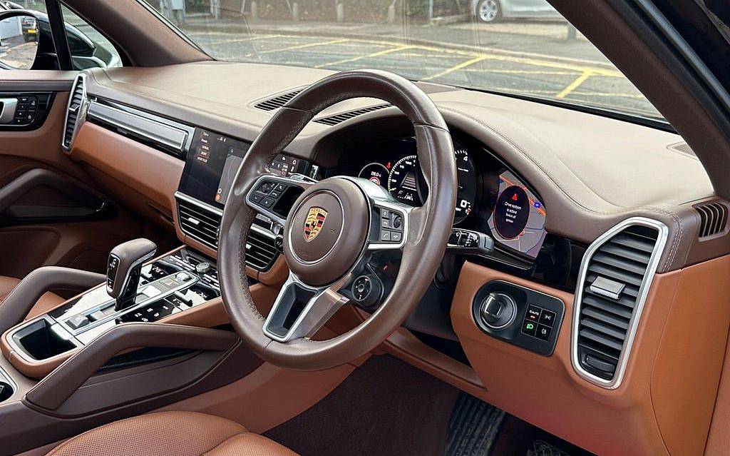 Porsche Cayenne V6 E-Hybrid TiptronicS 3.0 Panoramic Sunroof на 22-дюймовых дисках, цвет кузова Cayenne Sport Classic. Камера 360. Круиз-контроль с ограничителем скорости. Подогрев руля. Сиденья с подогревом спереди и сзади. Вентиляция передних сидений. Четырехзонный автоматический климат-контроль.