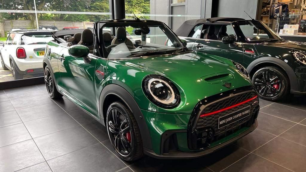 Mini Convertible John Cooper Works Premium Plus 2.0 на 17-дюймовых дисках - гусеничные спицы John Cooper Works. Круиз-контроль с функцией торможения. Запуск двигателя без ключа.