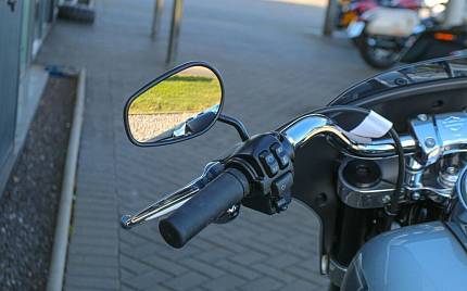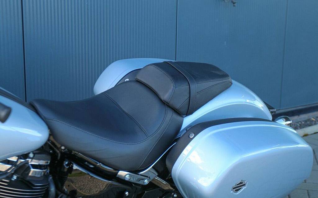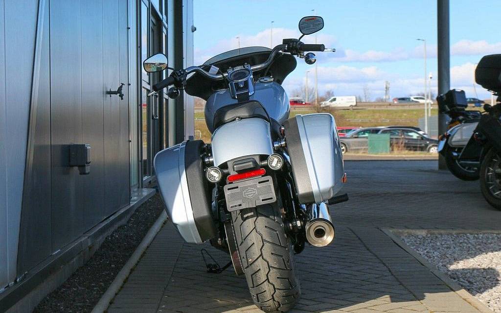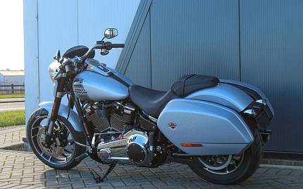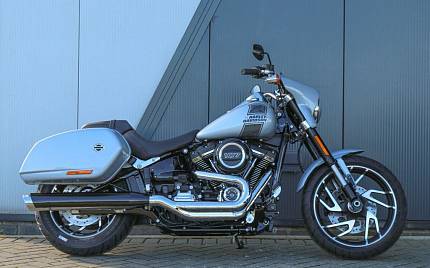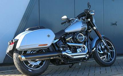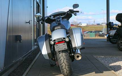 Harley Davidson Softail Sport Glide. Двигатель Milwaukee Eight черного цвета с акцентами из сплава, запираемые и съемные кофры с цветными ключами, съемный обтекатель мини-крыла летучей мыши, регулируемая задняя подвеска, круиз-контроль, ABS, колеса Black Mag, хромированный и черный выхлоп «два в одном», двухместное сиденье с подножками для пассажиров, центральная панель приборов , Хромированная основная крышка и крышка таймера, Укороченное переднее крыло, Передние органы управления, Светодиодные фонари.