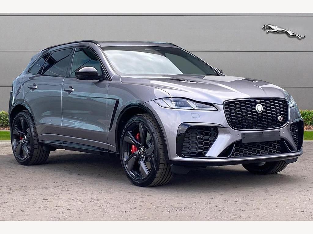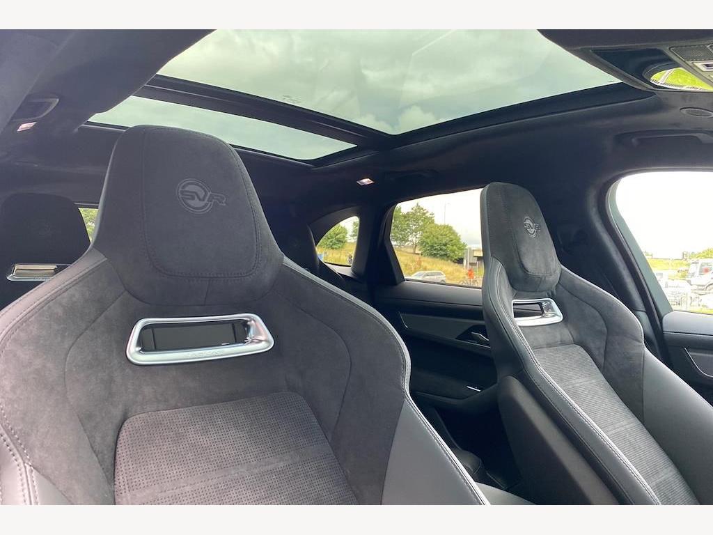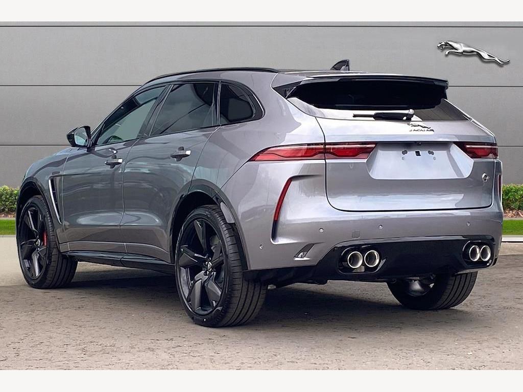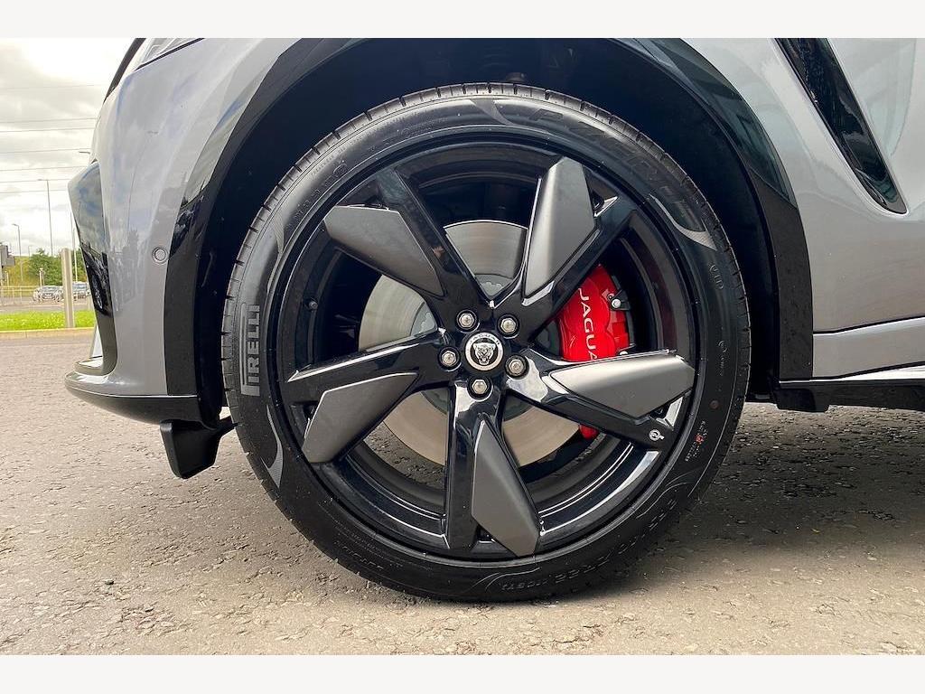 Jaguar F-Pace P550 V8 SVR 5.0 Panoramic Sunroof on 22in Alloy Wheels - Forged - 5 Split-Spoke Style 5117 - Gloss Black with Satin Technical Grey Insets. 3D Surround Camera. Adaptive Cruise Control with Steering Assist. Blind Spot Assist. Front and Rear Parking Aid. Meridian Sound System. 14-Way Heated and Cooled Electric Memory Performance Front Seats. Heated Steering Wheel.