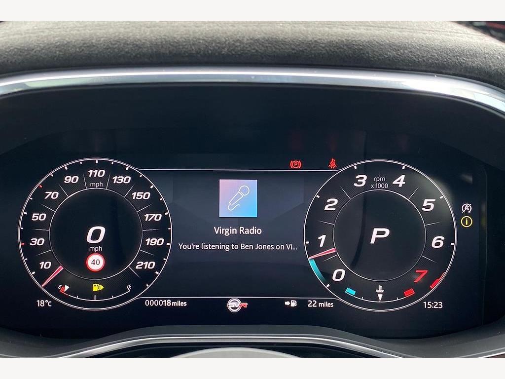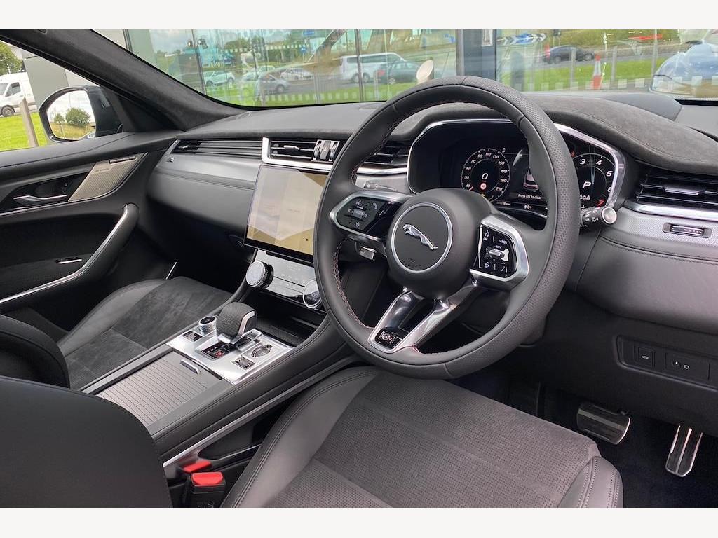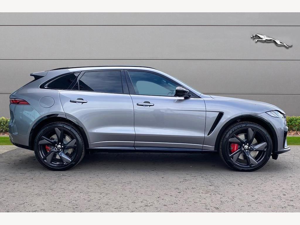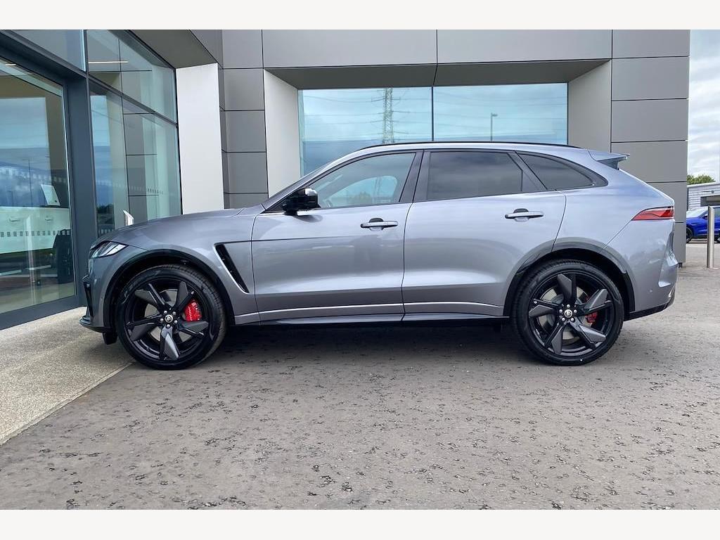 Jaguar F-Pace P550 V8 SVR 5.0 Panoramic Sunroof on 22in Alloy Wheels - Forged - 5 Split-Spoke Style 5117 - Gloss Black with Satin Technical Grey Insets. 3D Surround Camera. Adaptive Cruise Control with Steering Assist. Blind Spot Assist. Front and Rear Parking Aid. Meridian Sound System. 14-Way Heated and Cooled Electric Memory Performance Front Seats. Heated Steering Wheel.
