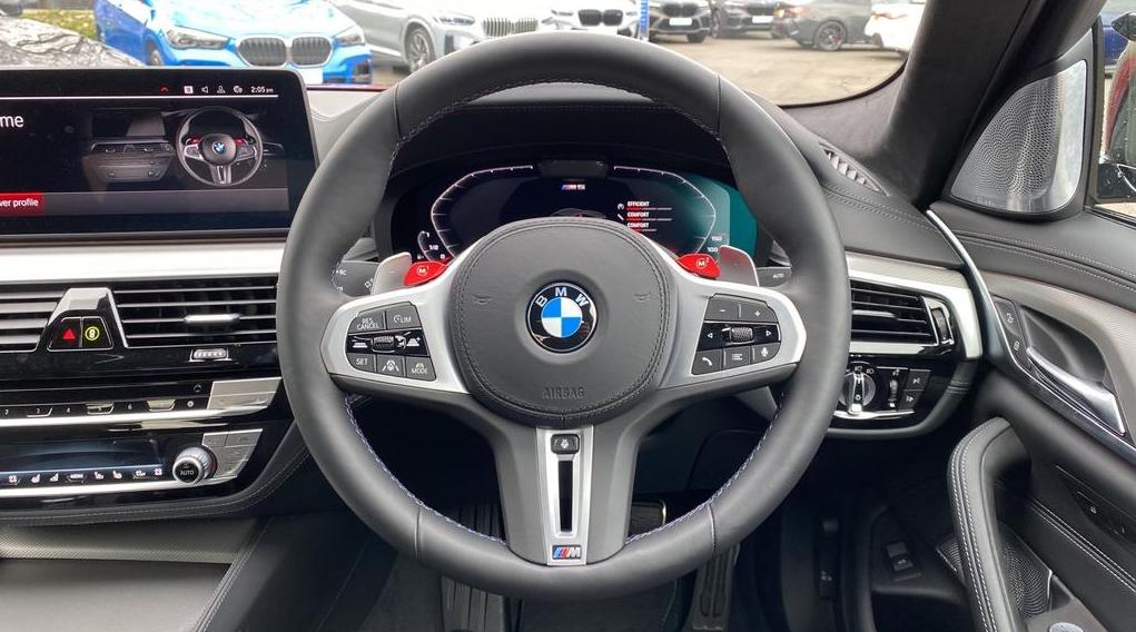 BMW M5 Competition 4.4 on 20in Alloy Wheels - M Y-Spoke Style 789 - Bicolour. Harman Kardon Surround Audio Sound System. Parking Assistant Plus. Seat Heating - Front. Red Start-Stop Button.