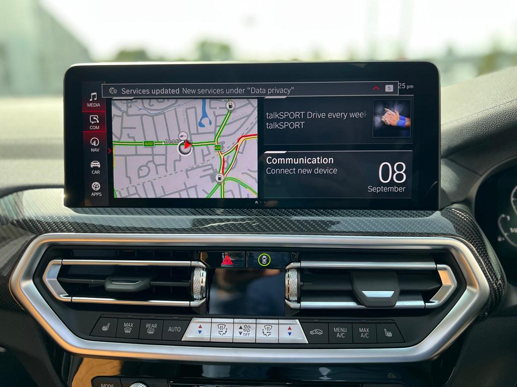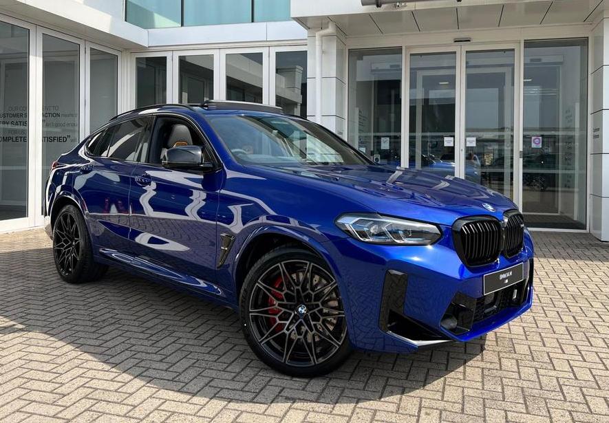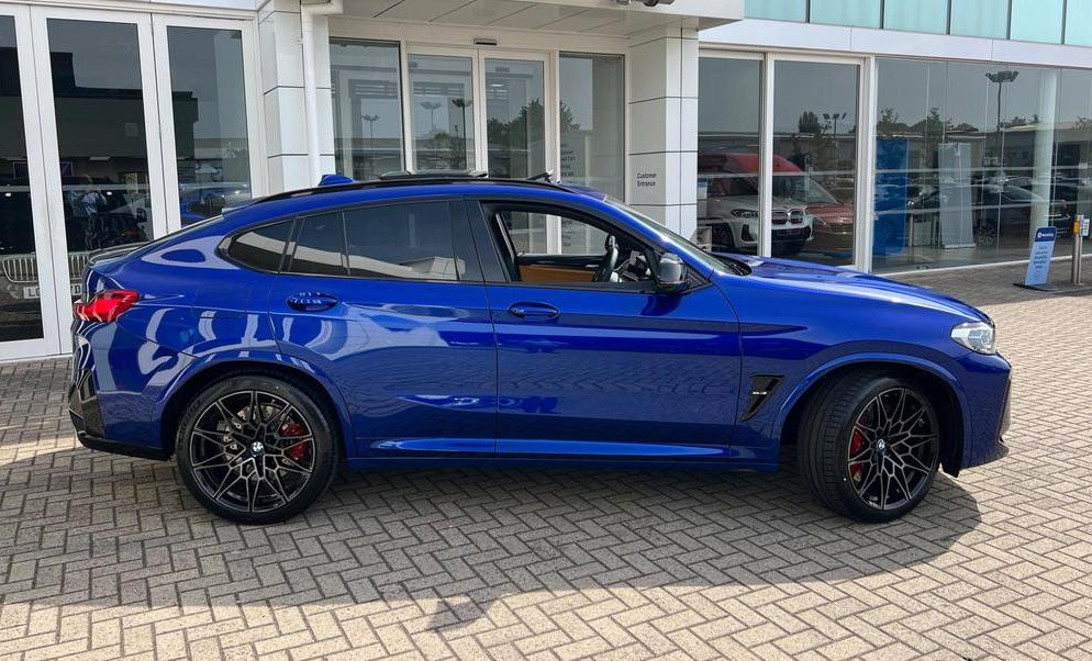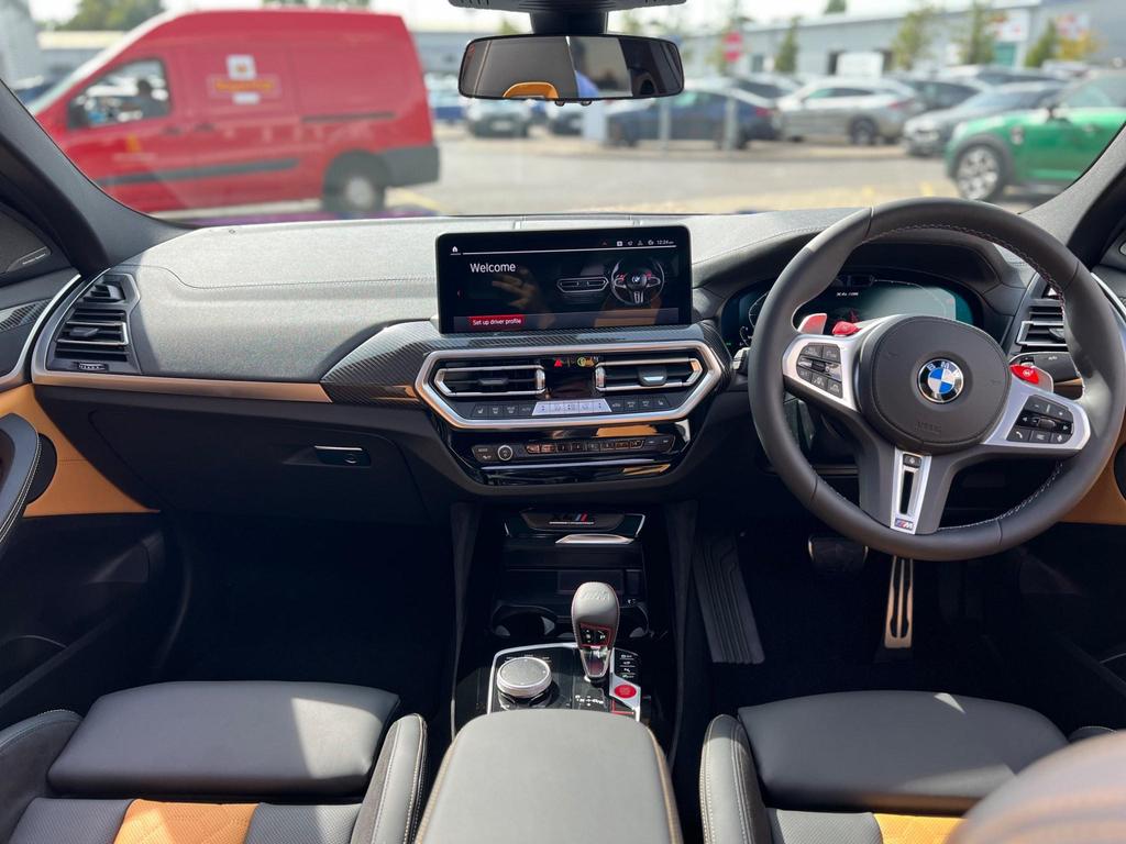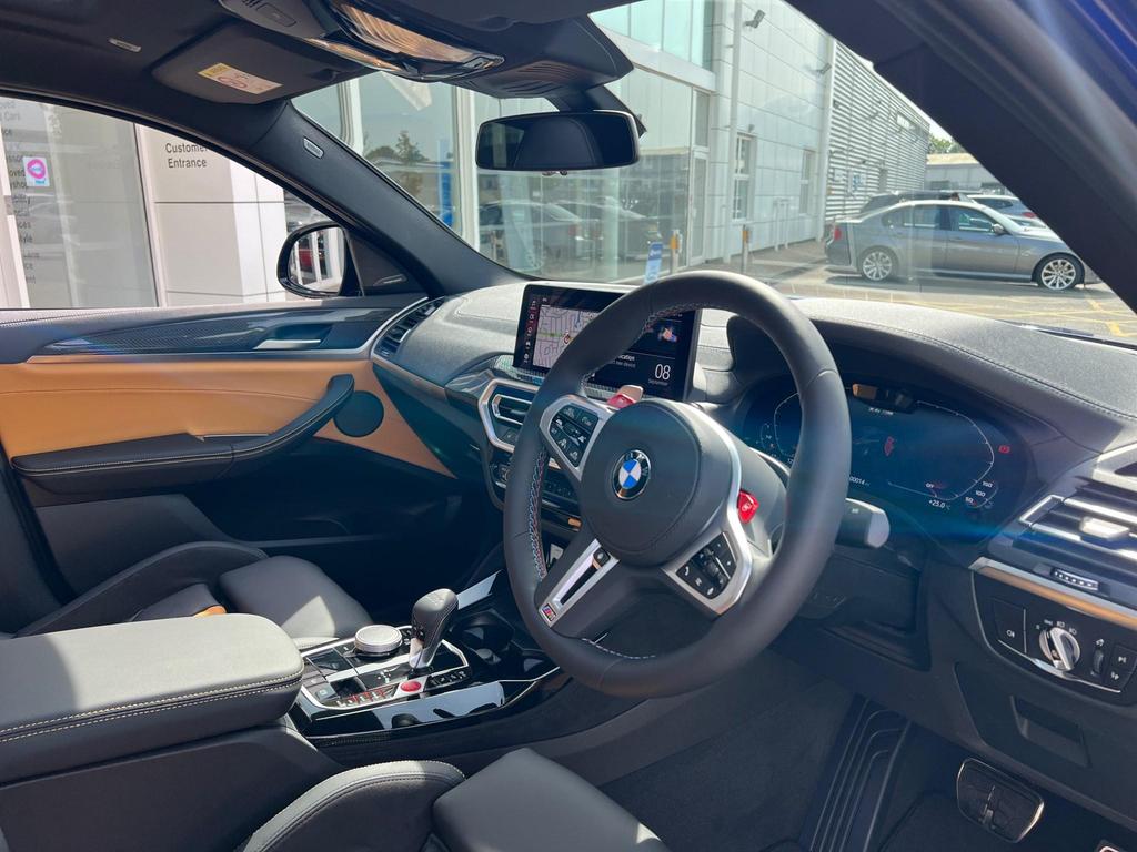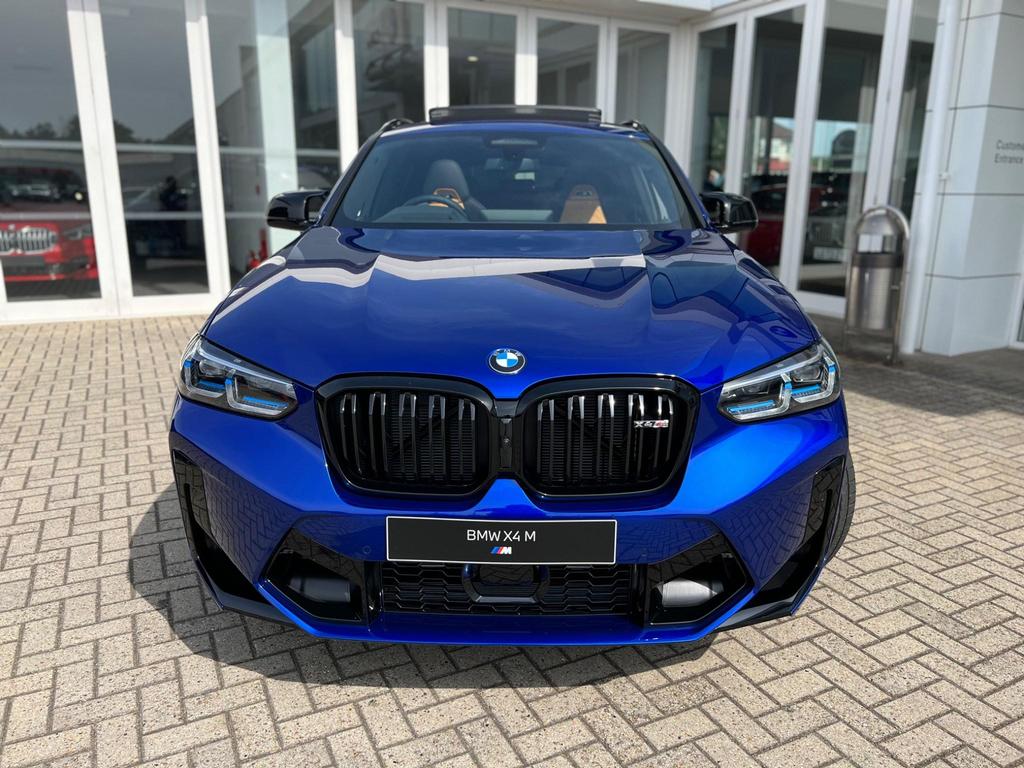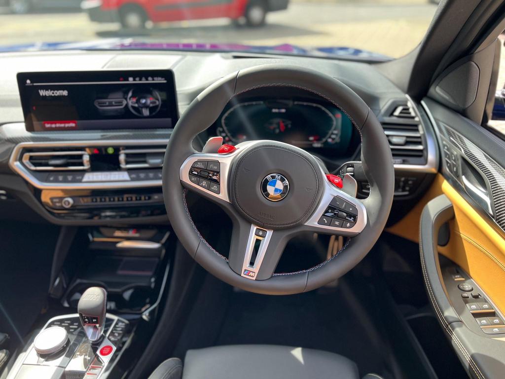 BMW X4 M Competition xDrive 3.0 Panoramic Sunroof on 21in Alloy Wheels - M Double-Spoke Bicolour - Jet Black - Style 892. Cruise Control with Brake and Speed Limiting Function. Loudspeaker System - Harman Kardon. Parking Assistant. Reversing Assist Camera. Automatic Start-Stop Button. Seat Heating - Front and Rear. Steering Wheel - Heated.