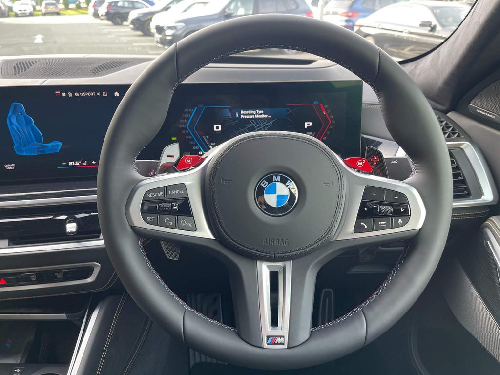 BMW X6 M i V8 Competition xDrive 4.4. Panoramic Sunroof. 21in-22in Alloy Wheels - Bi-Colour - Style 809. Harman Kardon Surround Audio Sound System. Parking Assistant Pro. Cruise Control with Brake Function. M Leather Steering Wheel. Front Heated Seats. Front Lumbar Support. Air Conditioning - Automatic with 2.5 Zone Control.