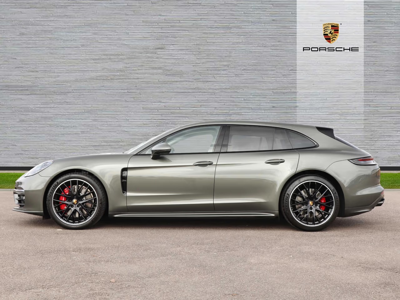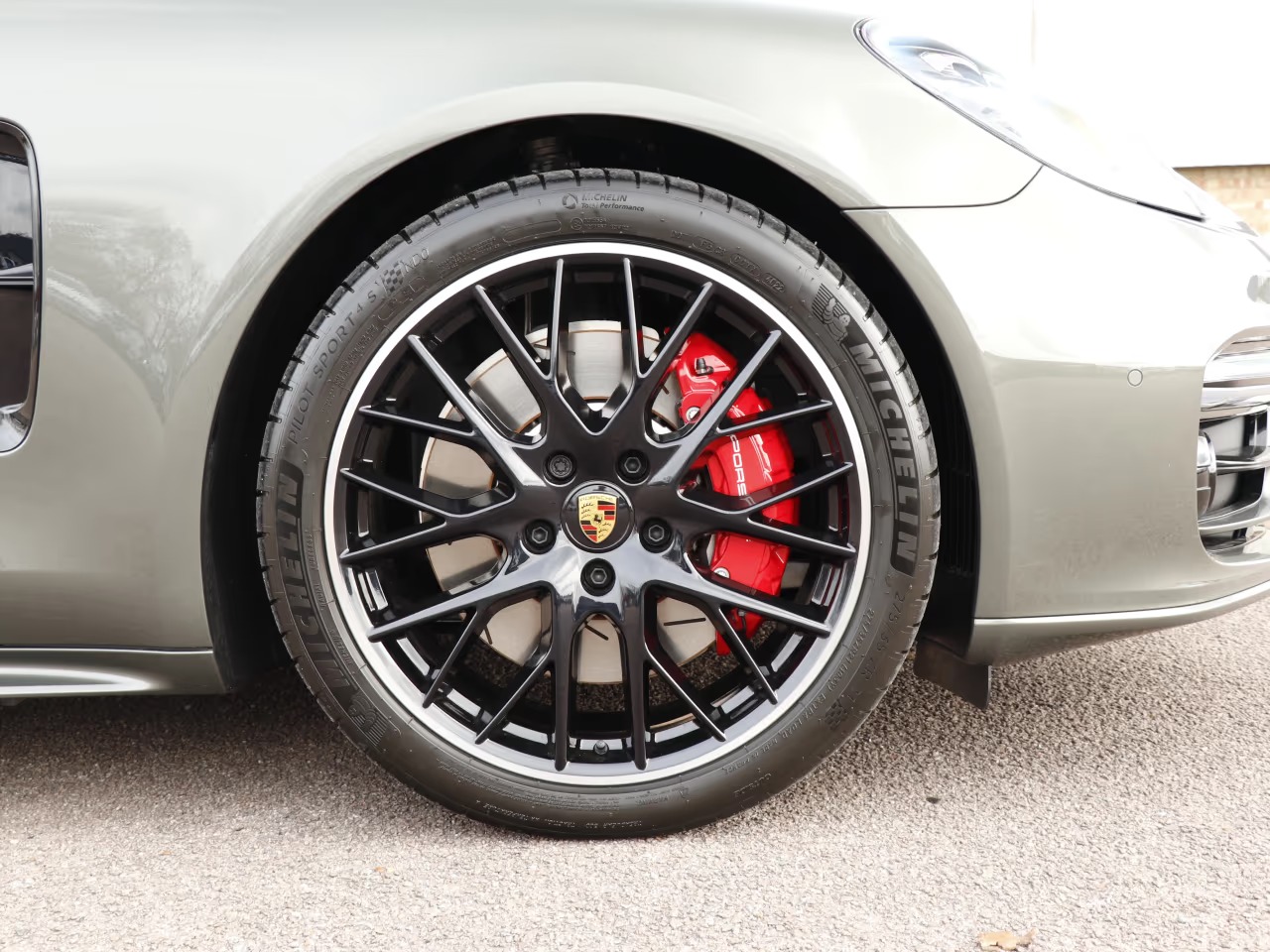 Porsche Panamera 4S Sport Turismo 2.9 Panoramic Sunroof on 21-inch Panamera Sport Design wheels painted in Jet Black Metallic. Comfort seats (14-way, electric) with memory package. Heated GT Sports steering wheel. BOSE® Surround Sound System.