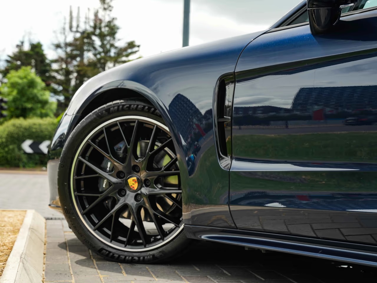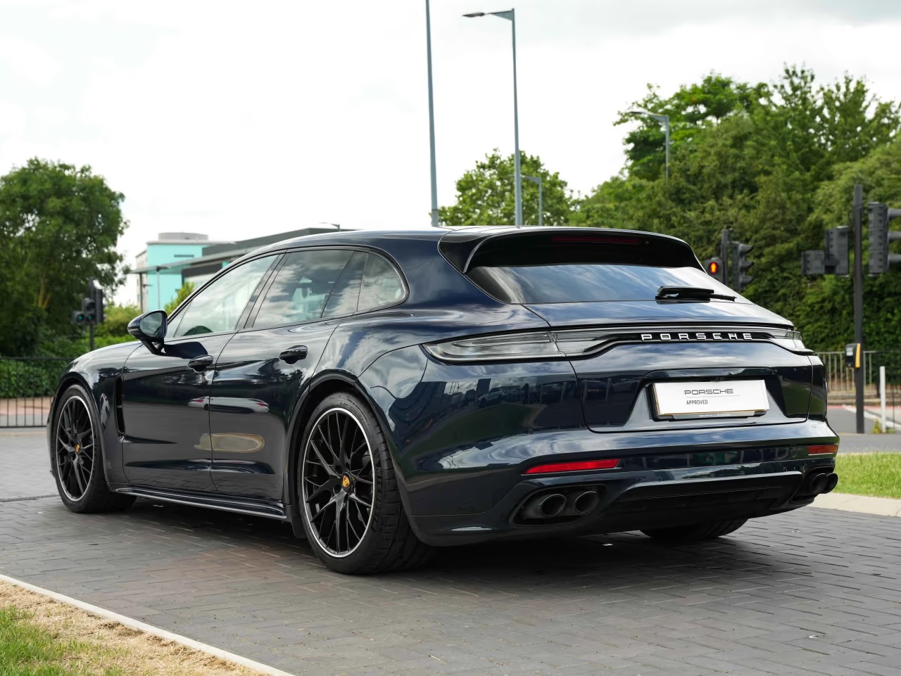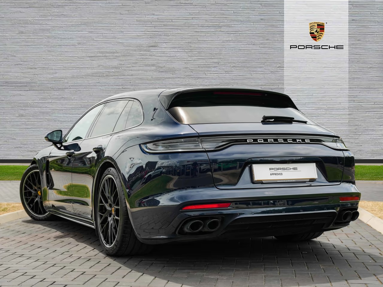 Porsche Panamera 4 Sport Turismo 2.9 Panoramic Sunroof on 21-inch Panamera Sport Design wheels painted in Black (high-gloss). Adaptive Sports seats in front (18-way, electric) with memory package. Heated GT Sports steering wheel. Park Assist including Surround View. Adaptive cruise control.