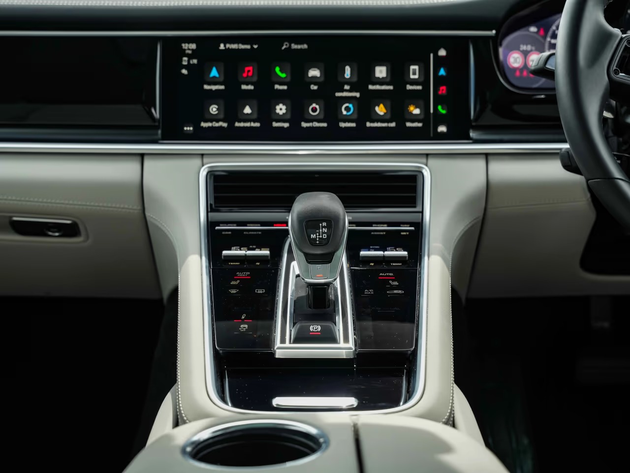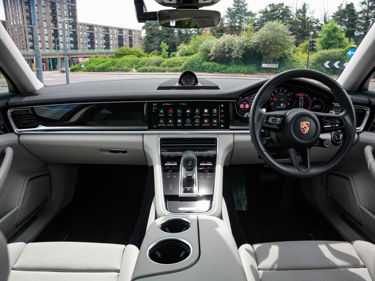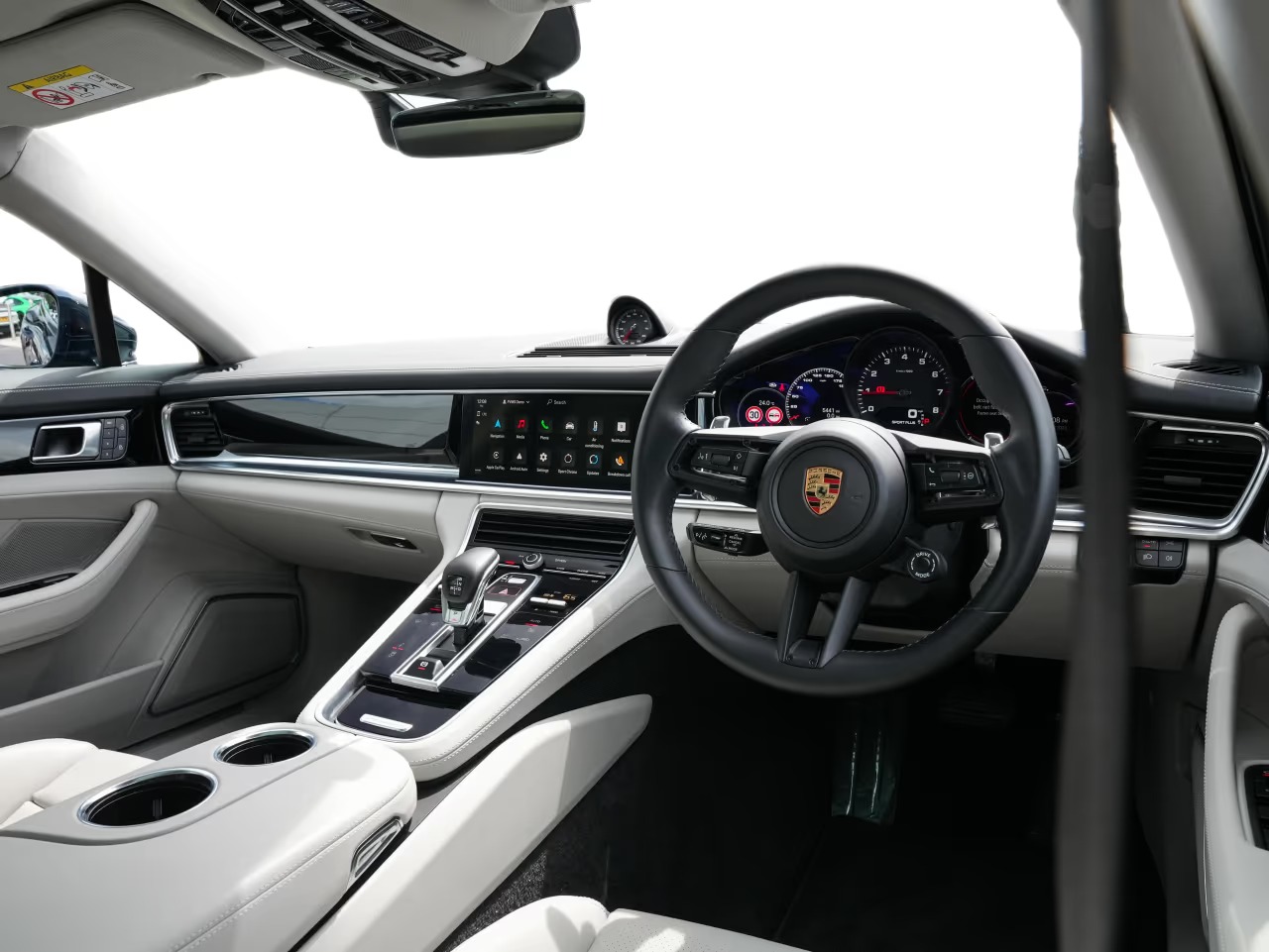 Porsche Panamera 4 Sport Turismo 2.9 Panoramic Sunroof on 21-inch Panamera Sport Design wheels painted in Black (high-gloss). Adaptive Sports seats in front (18-way, electric) with memory package. Heated GT Sports steering wheel. Park Assist including Surround View. Adaptive cruise control.