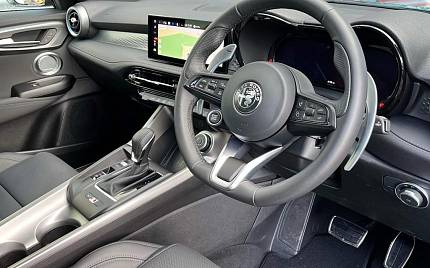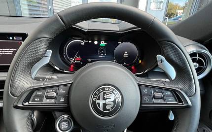 Alfa Romeo Tonale VGT MHEV Veloce DCT 1.5. 19in Alloy Wheels - Dark Finish - Diamond Cut. Harman Kardon Sound. Front and Rear Parking Sensors. Back Up Camera with Dynamic Lines. Adaptive Cruise Control. Sport Leather Steering Wheel with Start Button. Heated Front Seats. Dual-Zone Automatic Air Conditioning.