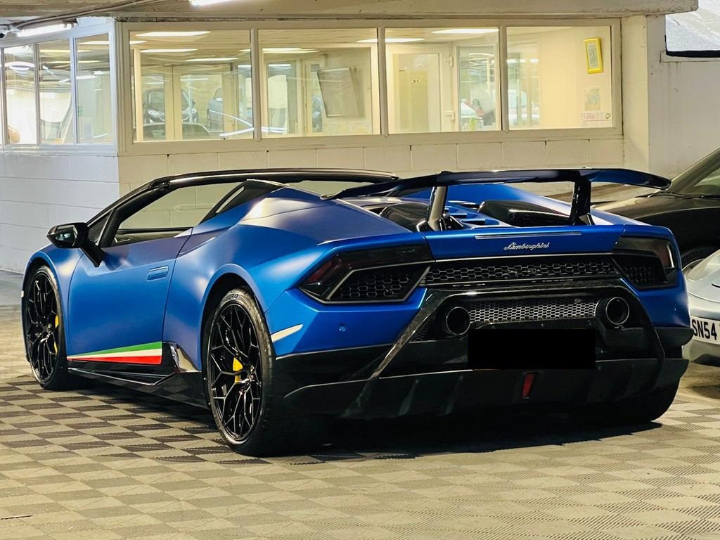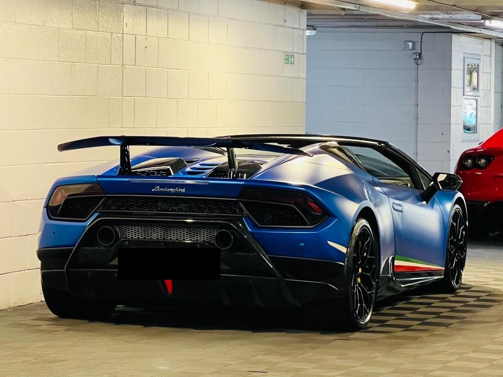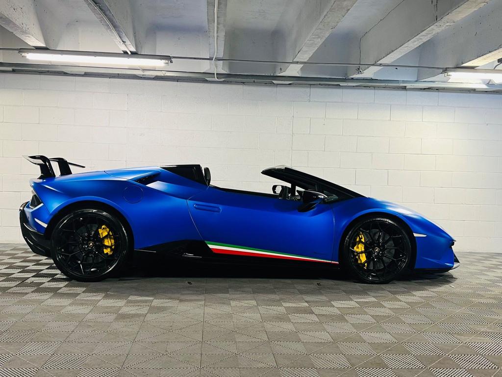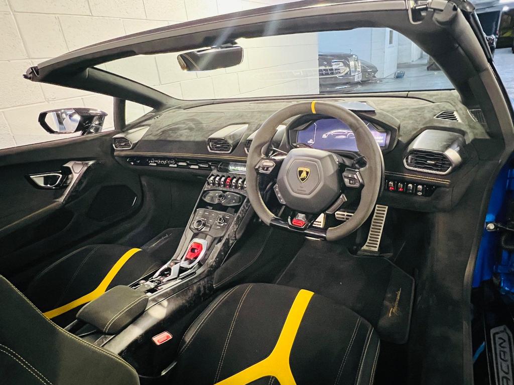 Lamborghini Huracan V10 LP 640-4 Performante Spyder LDF 5.2. 20 Inch Black Narvi Alloy Wheels. Front and rear parking sensors. Rear View Camera. Multi Function Steering Wheel in Alcantara Leather. Sports Carbon Fibre Bucket Seats.