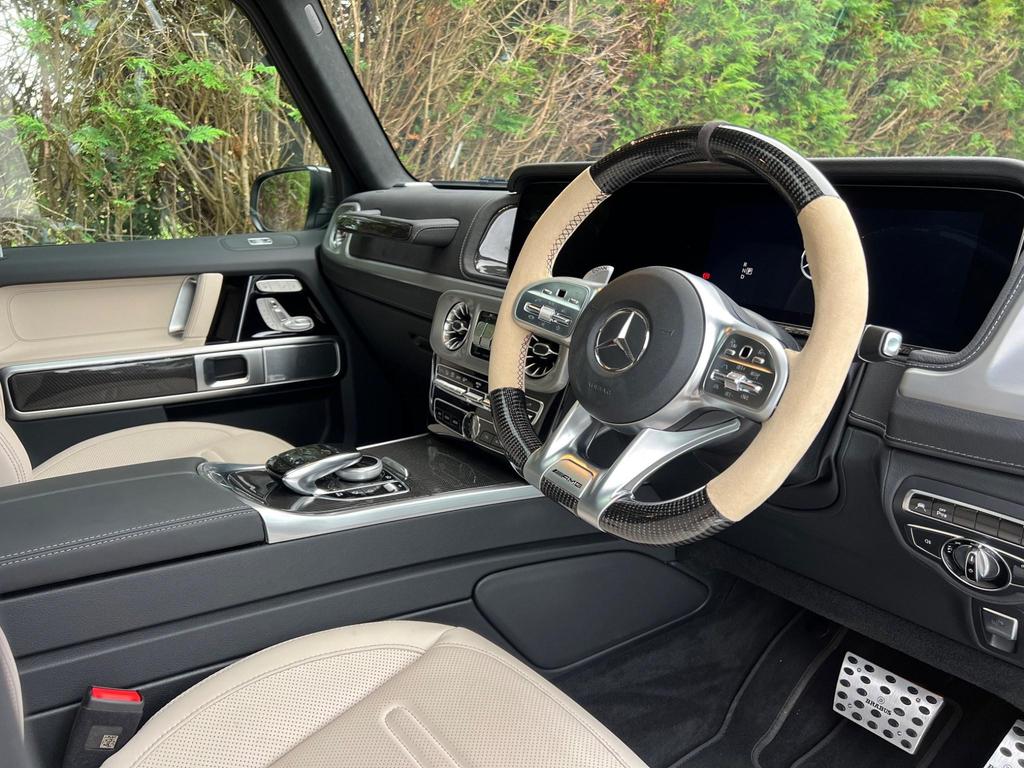 Mercedes-Benz G Class G400d Carbon BRABUS AMG Line Premium Plus G-Tronic 2.9. Panoramic Sunroof. 20in Alloy Wheels - AMG 5-Twin-Spoke Light - Painted in High-Gloss Black with High-Sheen Finish. Burmester Surround Sound System. Parking Package with 360-Degree Camera. Cruise Control with Variable Speed Limiter. Steering Wheel - Heated. Front Seats - Heated and Electrically Adjustable. Automatic Climate Control with Three Climate Zones and Three Climate Styles - Medium - Diffuse and Focused.