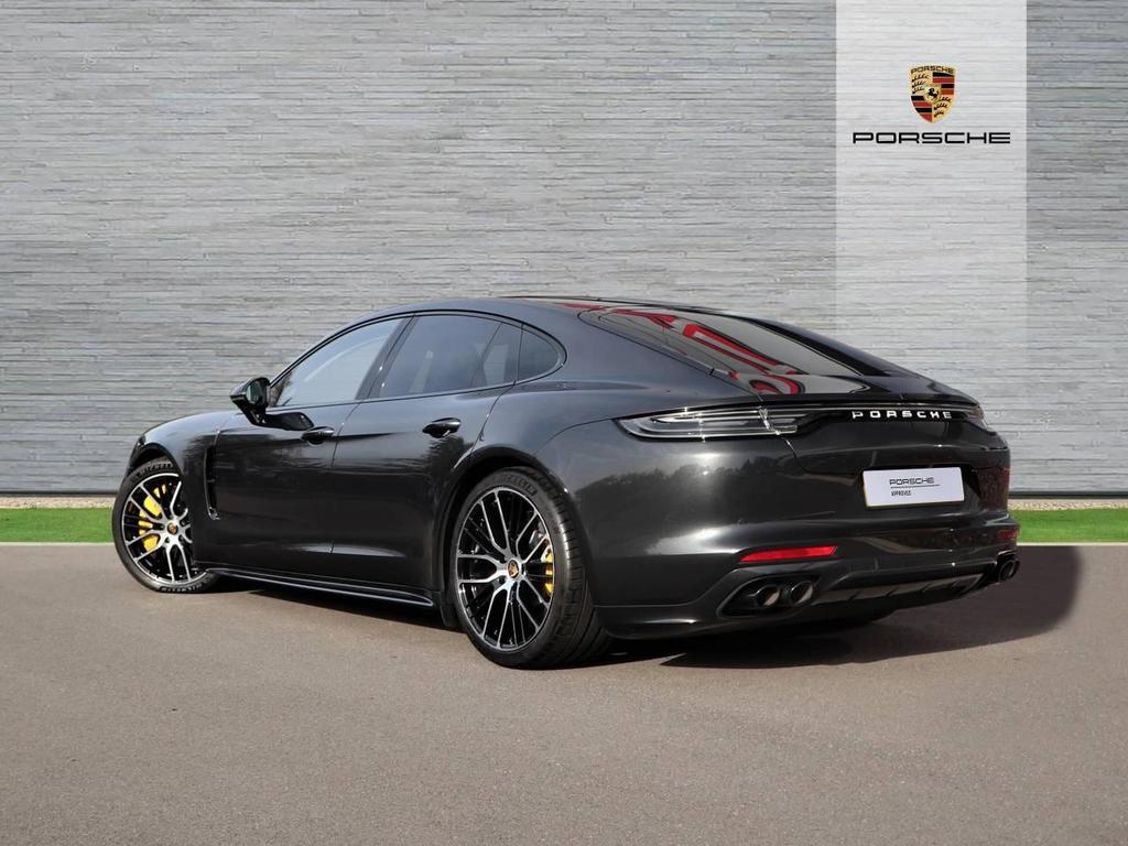Porsche Panamera Turbo S PDK 4.0. Panoramic Sunroof. 21-inch Panamera Exclusive Design sport wheels painted in Jet Black metallic. Burmester System. ParkAssist including Surround View. Cruise Control. Heated Sports steering wheel. Massage function (front) including seat ventilation (front and rear). 4-zone climate control.