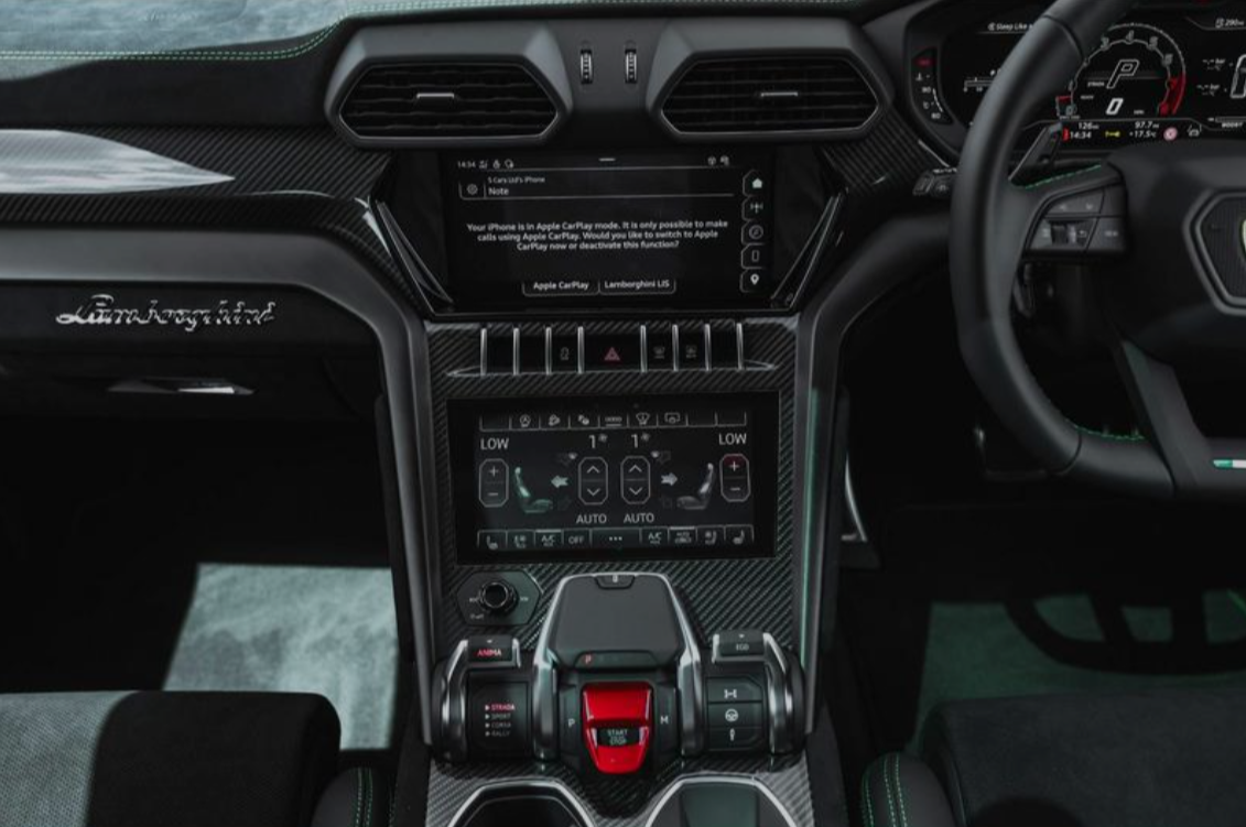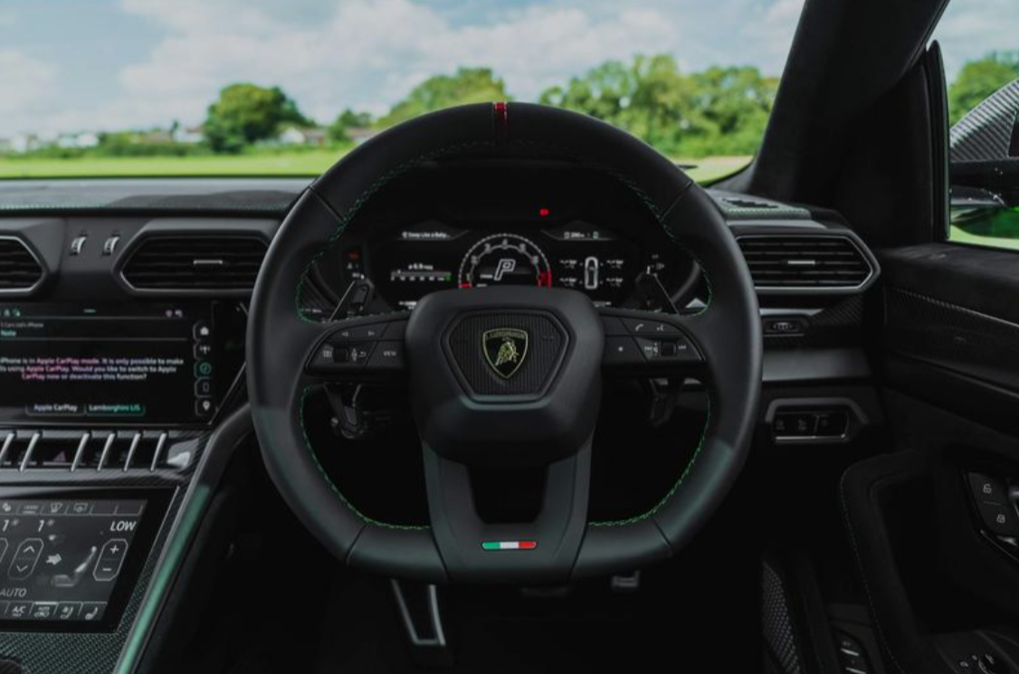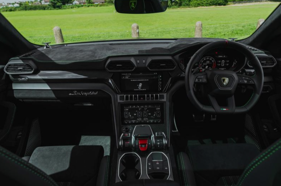Lamborghini Urus Performante V8 4.0 Panoramic Sunroof, 22-inch alloy wheels, Anti-theft device, Dual-zone air conditioning, Bluetooth, Navigation system, Carbon fiber Spoiler, Twin supercharger, Factory tint, Leather steering wheel, Keyless, Sport seats, Power seats, Heated seats, Memory seats, Heated steering wheel, Adaptive cruise control, Blind spot monitoring system, Tire pressure monitoring system, Park assist, Collision mitigation system with automatic breaking, Front view camera, Rear view camera, On-board computer.