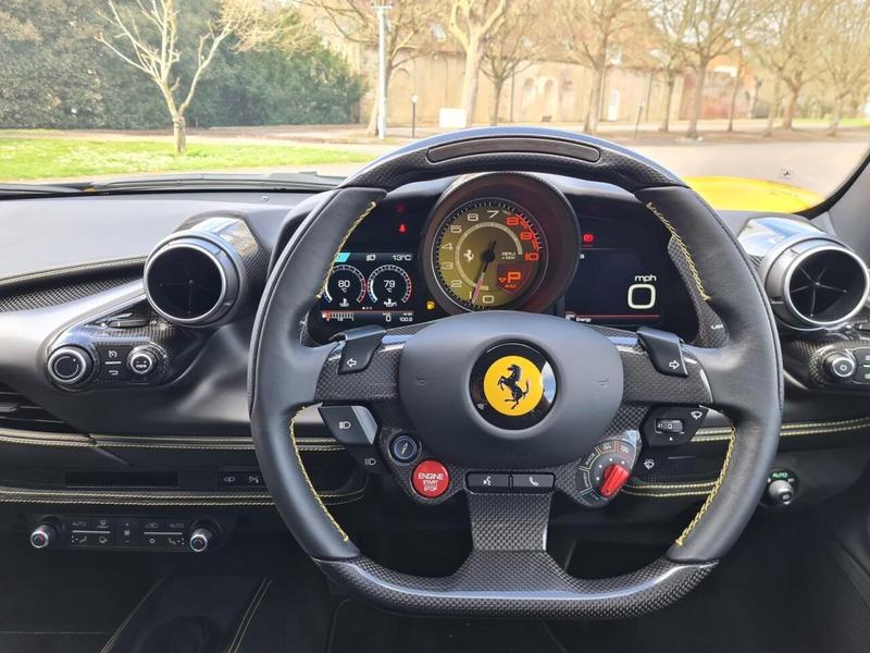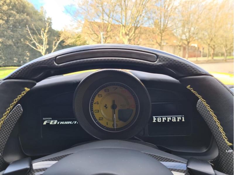 Ferrari F8 Tributo F1 DCT V8 3.9 20in Alloy Wheels, CCM - Carbon-Ceramic Brake System, E-Diff3 - Evolution of Electronical Differential, Race Manettino - Integrated Command for Control of Vehicle Set Up on Steering Wheel Manettino, SCM3 Magnaride Suspension System, Alcantara Exterior Door Panel, Scuderia Ferrari Shields on Fenders, Rear Parking Camera, Anti-Theft Satellite System with 1 Year Subscription - NVT1, Dual Zone Air Conditioning System, Multimedia System, Keyless Start Car Key, Two Dual-Stage Front Airbags.