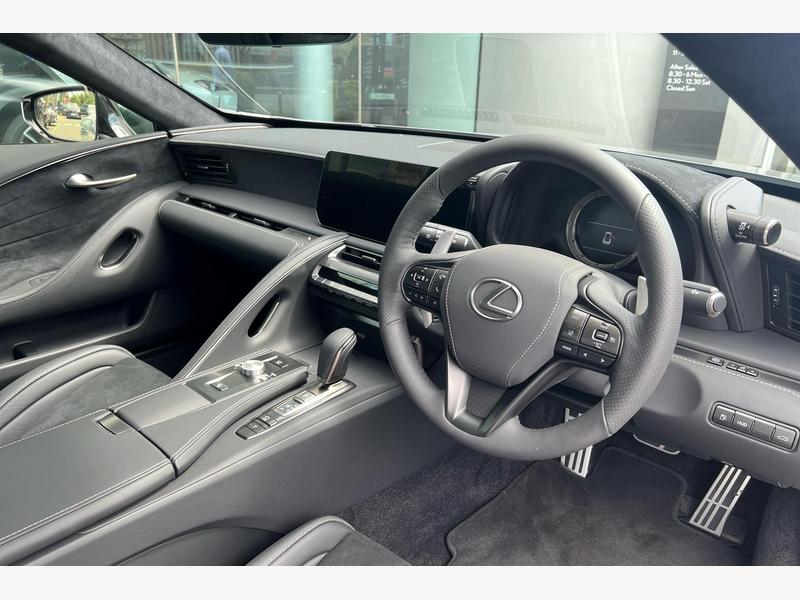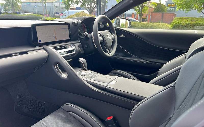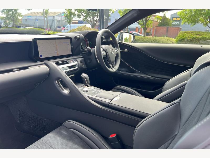 Lexus LC 500 Sport Plus 5.0, 21-inch alloy wheels, Power rear gate, Spoiler, Leather steering wheel, Heated steering wheel, Multifunctional display, Head-up display, Keyless, Sport seats, Power seats, Memory seats, Adaptive cruise control, Blind spot monitoring system, Tire pressure monitoring system, Parking sensors, Collision mitigation system with automatic breaking, Driver fatigue monitoring system, Navigation system, Rear view camera, On-board computer.