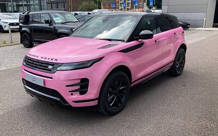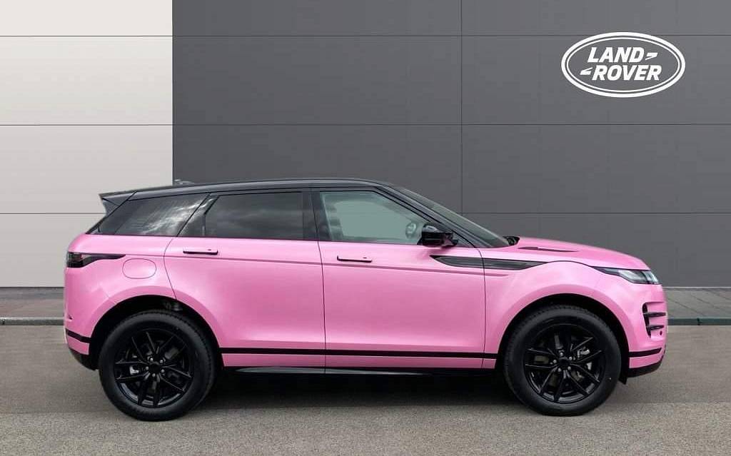 Land Rover Range Rover Evoque P300e Dynamic SE 1.5 19in Alloy Wheels - Style 5136 - Gloss Dark Grey with Diamond Turned Contrast, Bespoke Pink Wrap on Santorini Black, Unpainted Brake Calipers, Traffic Sign Recognition and Adaptive Speed Limiter, Rear Collision Monitor, Front and Rear Parking Aid, ACC - Adaptive Cruise Control, 11.4in Touchscreen, Acoustic Laminated Windscreen, 12-Way Driver Memory and 10-Way Passenger Electric Front Seats with 2-Way Manual Headrests and Rear Centre Armrest, Two-Zone Climate Control, Wireless Device Charging, Android Auto/Apple CarPlay.