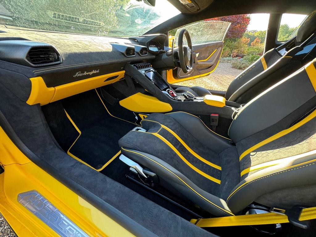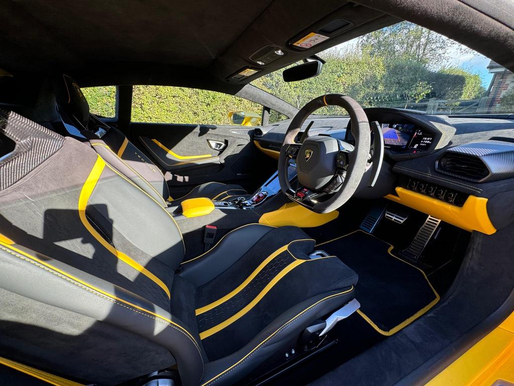 Lamborghini Huracan LP 640-2 Tecnica LDF V10 5.2 20in Alloy Wheels - Ad Personam Rims and Monolock - Loge - Forged Matt Black with Monolock in Black, Bridgestone Potenza Sport, Yellow CCB Brakes Calipers, Sport Exhaust Sound System with High-Mounted Tail Pipes, Aerodynamic Design Integrated in Body Shape, Rear Wing in Shiny Black and Pillars Shiny Black, Tailpipes in Matt Grey, Full 12.3in TFT Colour Display Instrument Cluster with Adaptive Visualization, Lamborghini Touch-Screen Infotainment System - 8.4 Portrait Oriented Screen, Front and Rear Parking Sensors, Automatic Dual-Zone Air Conditioning System with Integrated Active Carbon Filter, Sensonum Premium Sound System, Smartphone Interface and Connected Services, Ad Personam - Alternative Contrast Colour - Giallo Belenus, Alcantara-Leather - Bicolour - Grigio Octans - Giallo Belenus, Interior Carbon Package, Lifting System, Lightweight Body in Aluminium.