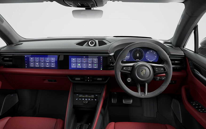 Macan Turbo Electric Panoramic Sunroof 20-inch Macan Turbo Wheels, Brake system with brake calipers in Red, Adaptive Sports Seats front, Seat Heating, Seat ventilation, Side window trims in Black, Roof rails in Black aluminium, Sport Chrono Package, Porsche Electric Sport Sound, Thermally and noise insulated glass including privacy glass, Accent Package Black, Augmented Reality Head-Up Display, Surround View with Active Parking Support, Adaptive cruise control, Comfort Access, Advanced Climate Control (4-zone), Passenger Display, Body shape SUV, Powered tailgate, Aluminum roof, Permanent Magnet Synchronous Motors on Front and Rear Axles, Four-wheel drive, Adaptive air suspension, Performance Battery Plus, Matrix LED Headlights, Interior package carbon, Deletion of model logo embossed on headrests, Door Sill Guards Brushed Aluminium in Black with "Macan turbo" Designation, Trafc sign recognition,Lane Change Assist, Warn and brake assist, BOSE® Surround Sound System, Smartphone Integration.