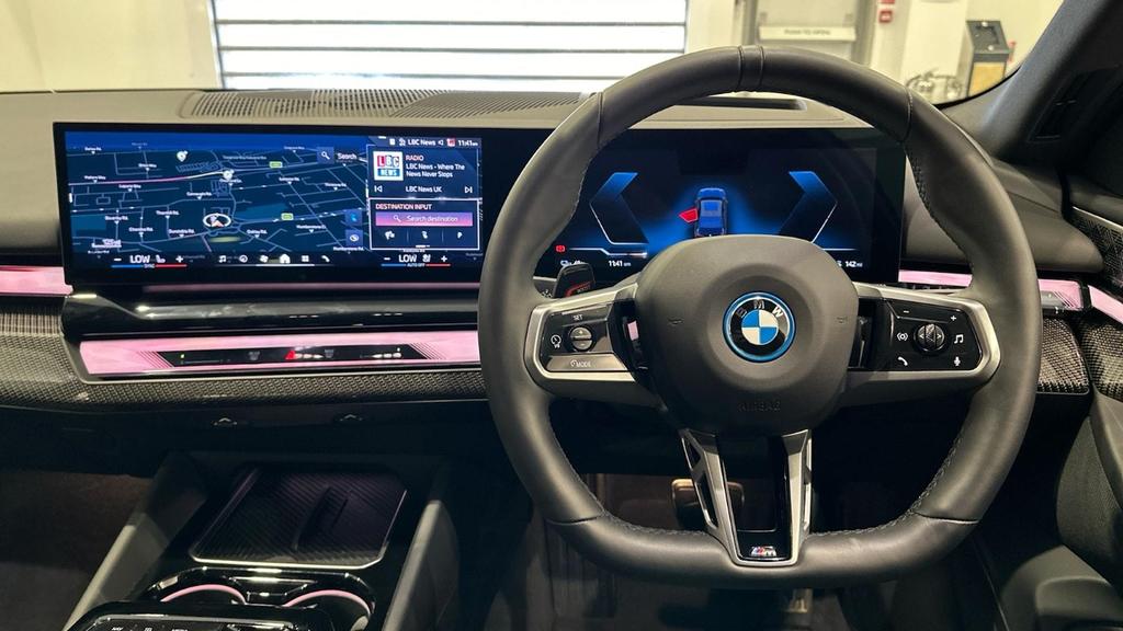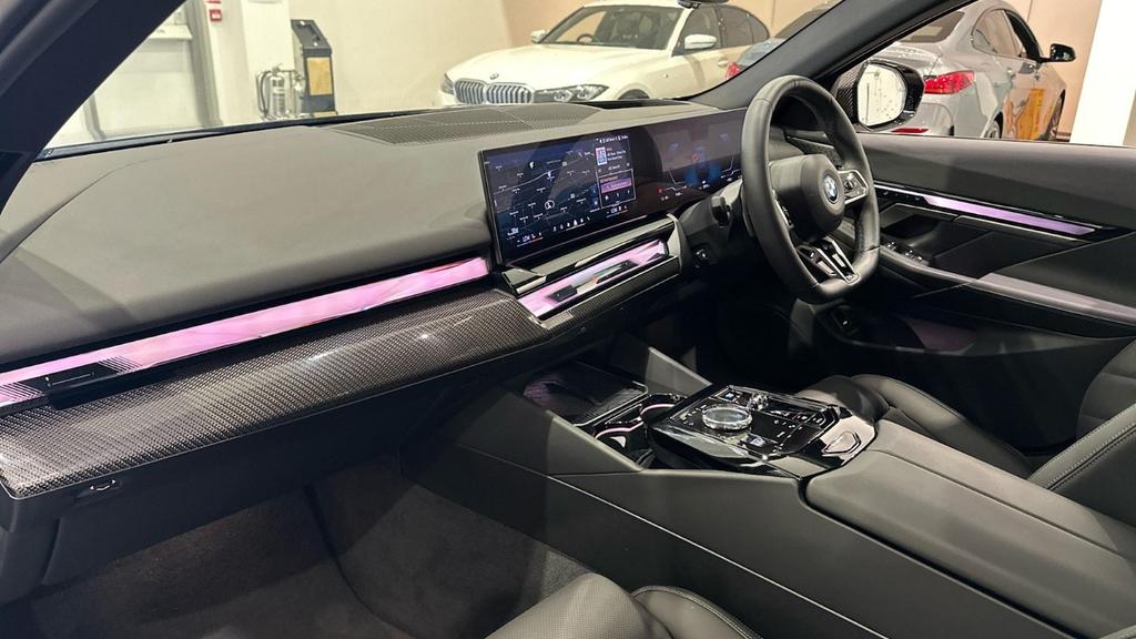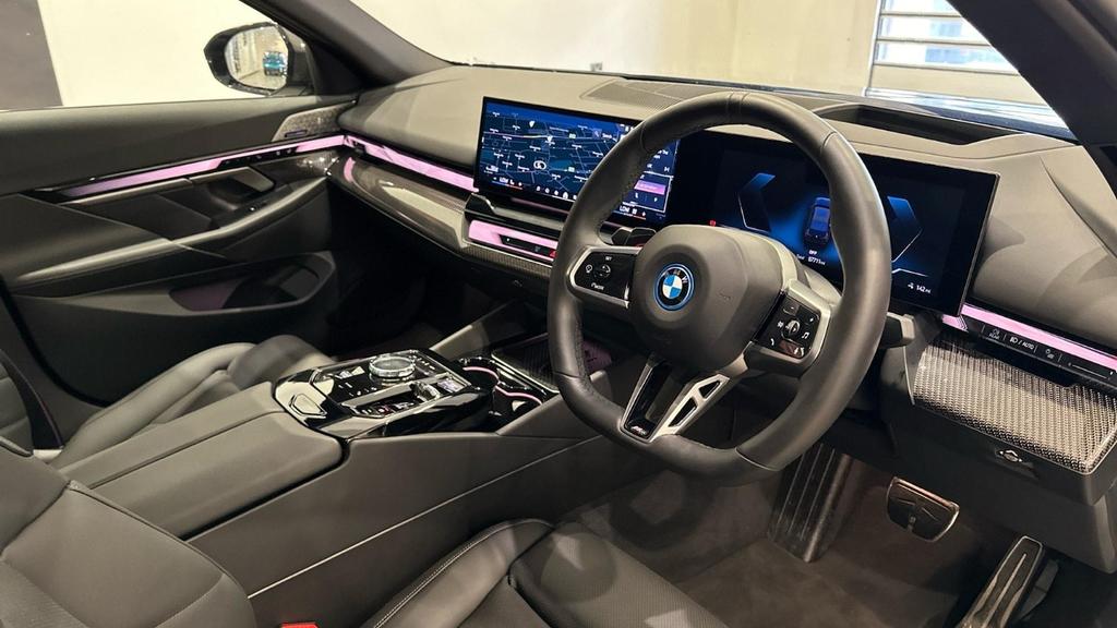 BMW i5 eDrive40 M Sport Pro 20in M aero 939M BiColour Black Grey alloys, Heated Steering Wheel, Electric Bootlid, Comfort Access, Crafted Clarity Controls, Travel and Comfort System, Interior Camera, Sun Protection Glass, Parking Assistant Plus, Adaptive LED Headlights, Bowers & Wilkins Surround Sound System, Live Cockpit Pro with Head-Up Display, BMW Natural Interaction, M Carbon Exterior Styling, Comfort Pack, Technology Pack, Tyre Repair Kit, BMW Iconic Glow, BMW Individual Lights Shadow Line, M Sport Brakes with Red Calipers, Alarm System, M Sport Seat Belts, Charging Cable Professional (Mode 3), Flexible Charging Cable (Mode 2), Ambient Lighting, eDrive Exterior Sound, BMW IconicSounds Electric, Dark Silver M Accent Combined with Aluminium, Front Lumbar Support, Heated Front Seats, Driving Assistant, Active Guard, BMW TeleServices, BMW Emergency Call, BMW Online Services, Smartphone Integration, Connected Package Pro, Storage for Wireless Charging, Personal eSIM, DAB Radio, Individual High-Gloss Shadowline - Extended, M Sport Suspension, High-Gloss Shadowline Exterior Trim, Anthracite Headlining, COC Additional Contents, Active Pedestrian Safety, Control E, Additional M Sport Package Pro Content, M Sport Exterior Parts, M Sport Interior Parts, M Sport Package Pro, M Sport Package.