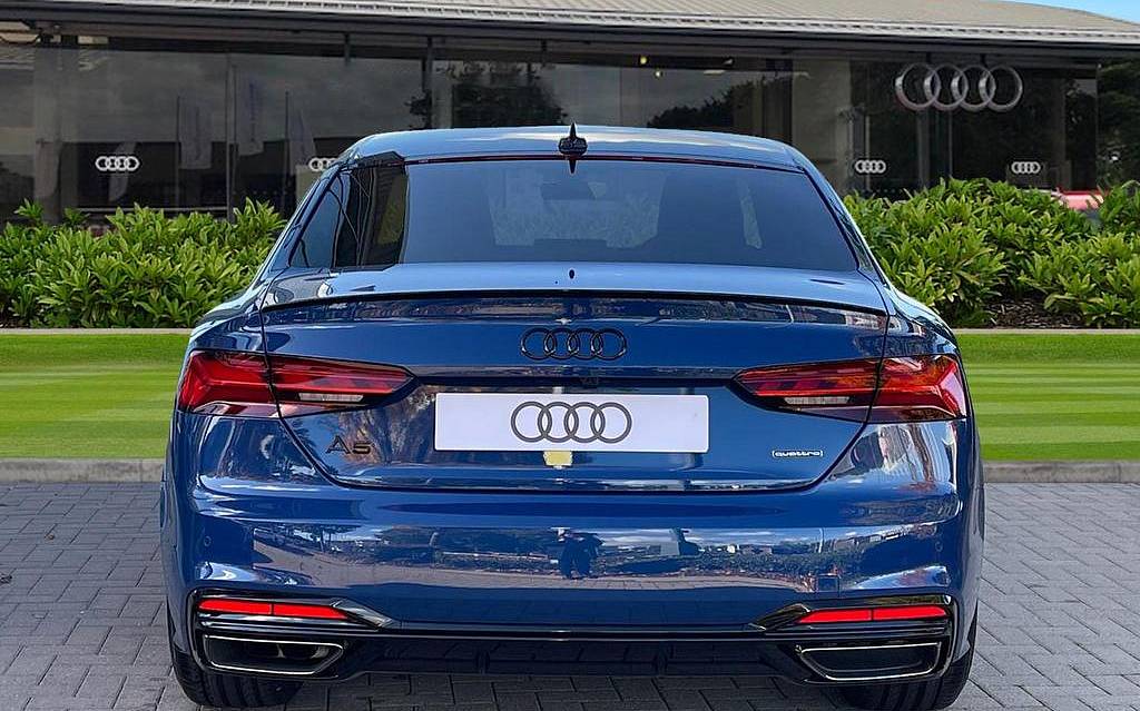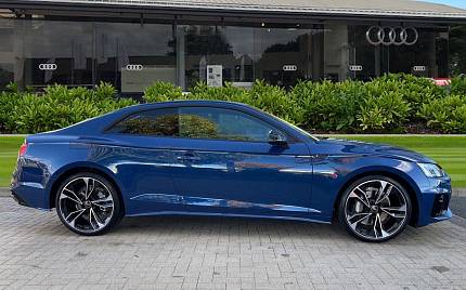 Audi A5 40 Black Edition TDI 2.0 20in Alloy Wheels Twin-Spoke - Polygon Design - Gloss Anthracite Black - Gloss Turned Finish, 8 Passive Loudspeakers, Anti-Theft Alarm, Audi Connect Infotainment (36 Month Subscription), Amazon Alexa Integration, Audi Drive Select, Audi Matrix LED Headlights, Audi Smartphone Interface, Audi Virtual Cockpit, Auto-Dimming Rear-View Mirror, Start-Stop with Coasting Function, Black Styling Package, Bluetooth Interface, Cloth Headlining in Black, Cruise Control with Speed Limiter, DAB Digital Radio, 3-Zone Electronic Climate Control, Electric Boot Lid Release, Front Spoiler Lip in Body Colour, Heated Front Seats, Illuminated Door Sill Trims with S Logo, Keyless Go, LED Interior Light Package, MMI Navigation Plus, Parking System Plus, Privacy Glass, Rear-View Camera, S Model Rear Spoiler in Black, Split-Folding Rear Seat, Sport Suspension, Voice Control, 4-Way Electric Lumbar Support, 6-Airbag System, ABS, Attention and Drowsiness Assist, Electrically Adjustable Heated Door Mirrors, Electric Windows, Flat-Bottomed Leather Sports Steering Wheel, ISOFIX Child Seat Mounting, Lane Departure Warning, S Line Design Elements, Tool Kit, Tyre Repair Kit, Windscreen with Acoustic Glazing.