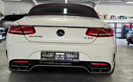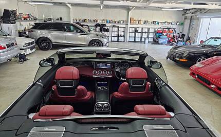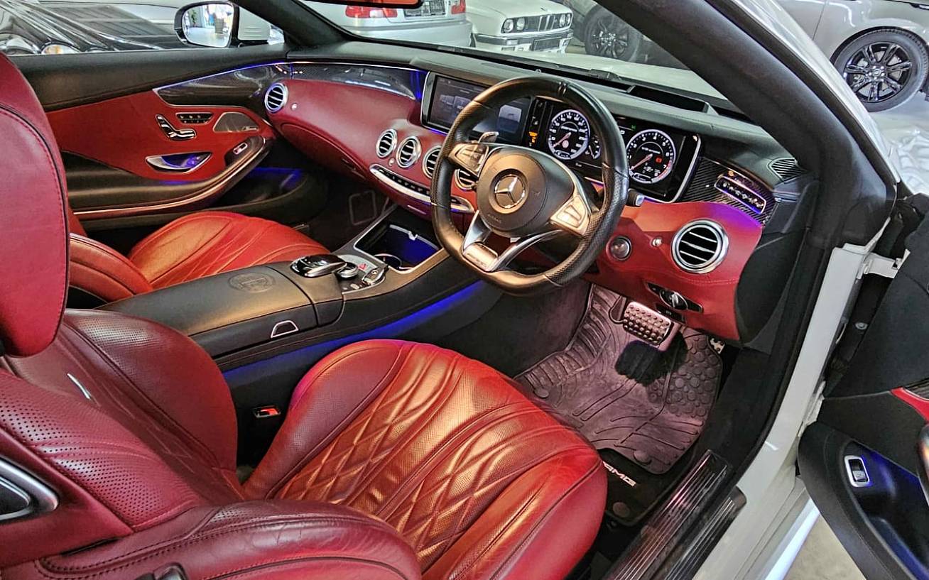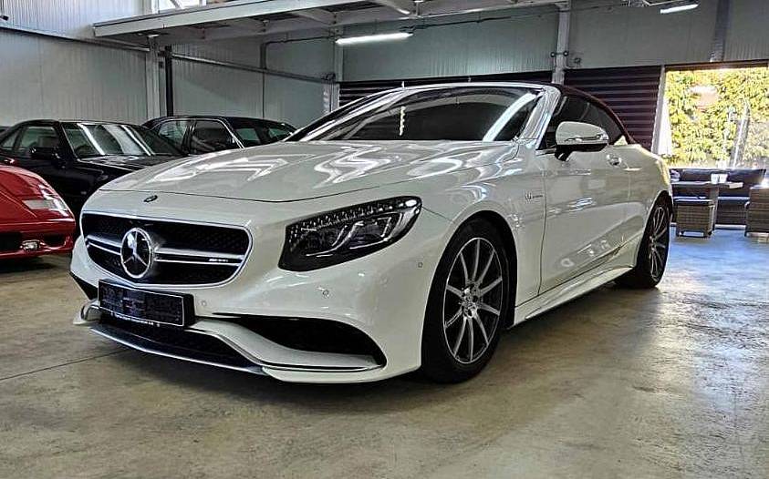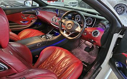 Mercedes-Benz S 63 AMG 5.5 19" AMG Multi-Spoke Wheels with Mixed Tires, Traffic Sign Recognition, Digital Radio Standard DAB, Basic Antitheft Alarm System, Exclusive Leather Trim, Leather Exclusive - Black - Aubergine/Red, Automatic Climate Control, Headlamp in Swarovski Look, Night View Assist, Roof Inner Lining Microfiber Dinamica Black, Automatic High Beam Switch Plus, Dynamic LED Headlamps, Left-Hand Traffic, Product Protection for Transport Vehicle Without Tie-Down Hooks, Soft Top Fabric Red - Ruby Red, AMG Styling Package - Front Spoiler, Side Skirt, Wheel Arch Enlargement, Keyless-Go Package, Driving Assistance Package Plus, Exclusive Package, Light Package, Theft Protection Package, Right-Hand Steering, Summer Tires, Rear Belt Status Indication.