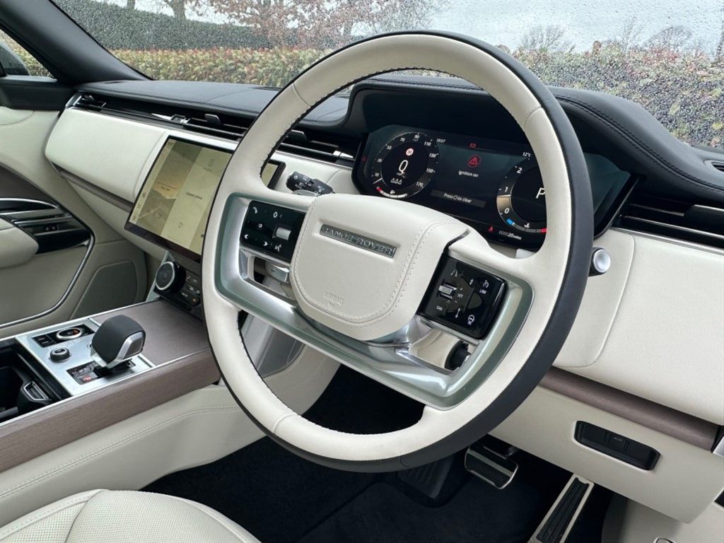 Land Rover Range Rover P530e First Edition 4.4 Panoramic Sunroof on 23in Alloy Wheels - Style 1074. 3D Surround Camera. Adaptive Cruise Control with Steering Assist. Front and Rear Parking Aid. Meridian Signature Sound System. Park Assist. 24-Way Heated and Cooled - Massage Electric Front Seats with Exclusive Class Rear Seats. Keyless engine start. Steering Wheel - Heated.