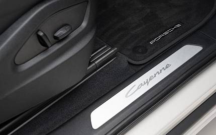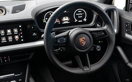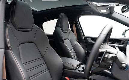 Porsche Cayenne Panoramic Sunroof 3.0 22in Exclusive Design Sport Alloy Wheels in Chromite Black Metallic, 2+1 Rear Seat System, SportDesign Package in High Gloss Black, Roof Spoiler in High-Gloss Black, Exterior Mirrors Painted in Black High Gloss, Door Handles Painted in Black High Gloss, Sports Tailpipes in Dark, Tinted HD-Matrix LED Headlights, Privacy Glass, Tinted Rear LED Lights with Animation, Porsche Crest on Headrests, Seat Belts in Mojave Beige, Sport Chrono Stopwatch with Mojave Beige Compass Instrument Dial, Porsche Crest Embossed on Centre Console Armrests, ParkAssist with Surround View, Porsche InnoDrive with Active Lane Keeping.