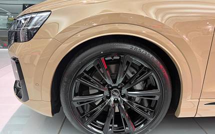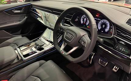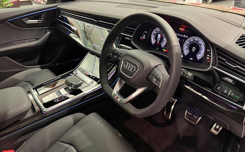 Audi Q8 PHEV 55 TFSI e Quattro Tiptronic 3.0 Panoramic Sunroof, 22in Alloy Wheels - Audi Sport - 10-Y-Spoke Style - Black Metallic, Adaptive Air Sport Suspension, Anti-Theft Wheel Bolts and Wheel Loosening Warning, Audi Sound System, Black Exhausts, Black Styling Pack Plus, Bluetooth Interface, Camera Based Traffic Sign Recognition, Cruise Control with Speed Limiter, DAB Digital Radio, Daytime Running Lights, Headlight Washers, Heated Front Seats, Illuminated Door Sill Trims with S Line Logo, Inlays - Oak - Grey, Parking System Plus with 360 Degree Display - Front - Rear and Side Sensors, Pedals in Stainless Steel, Steering Wheel - 3-Spoke Leather-Multi-function-Flat Bottomed-Sports-Shift Paddles.