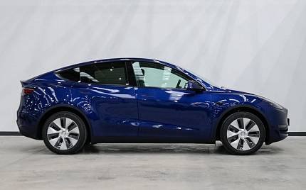 Tesla Model Y Long Range 19in Gemini Dark Wheels, Model Y Long Range All-Wheel Drive, All Black Interior, Blue exterior colour, Key keyless, range & charging status, climate control, live GPS location, touchscreen display.
