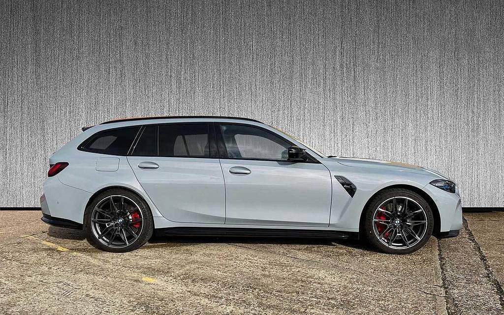 BMW M3 Competition Touring 3.0 19in Front - 20in Rear Alloy Wheels - M Double Spoke - 825 - Forged - Orbit Grey Matt with Mixed Tyres, Acoustic Glazing, BMW Individual Lights - Shadowline, Exterior Trim - Extended High Gloss Shadowline, Exterior Trim - High-Gloss Shadowline, Grey metallic exterior, M Roof Rails High-Gloss Black, Roof and Mirror Caps in High-Gloss Black, Sun Protection Glazing, Tyre Repair Kit, Visibility Pack, Drive Recorder, BMW TeleServices, BMW Emergency Call, BMW ConnectedDrive Online Services, Connected Package Professional, Wireless Charging Tray, Personal eSim, DAB Digital Radio, Harman Kardon Surround Audio Sound System.