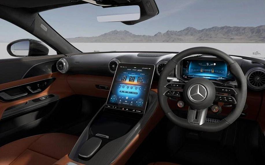 Mercedes-Benz GT AMG63 BiTurbo Premium Plus V8 4.0 21-inch AMG 5-twin-spoke forged wheels, AMG DYNAMIC PLUS Package, AMG Night package, AMG Track Pace, AMG Performance steering wheel in nappa leather/DINAMICA microfibre, AMG carbon fibre/Black Piano Lacquer trim, Nappa leather sienna brown/black, 360 camera, Burmester surround sound system, MBUX multimedia system, Digital Light, Hard-disc navigation, Wireless charging, Apple CarPlay, Android Auto, Ambient lighting, Climatised front seats, Multi-contour seats with massage function, Memory package, THERMOTRONIC climate control, KEYLESS-GO, Parking Package with reversing camera, Active Lane Keeping Assist, Active Parking Assist, Blind Spot Assist, Adaptive Highbeam Assist Plus, PRE-SAFE system, Active Brake Assist, Evasive manoeuvre support, Pedestrian protection, Traffic Sign Assist, Panoramic fixed glass roof, EASY-PACK tailgate, Rear-axle steering, AMG electronic rear-axle limited-slip differential, AMG light display, Keyless entry, Summer tyres, TIREFIT, Yellow-painted AMG brake callipers.