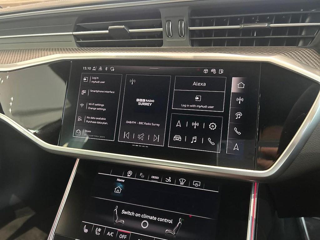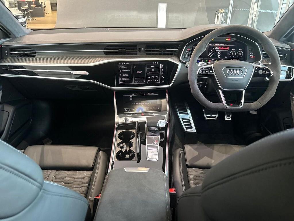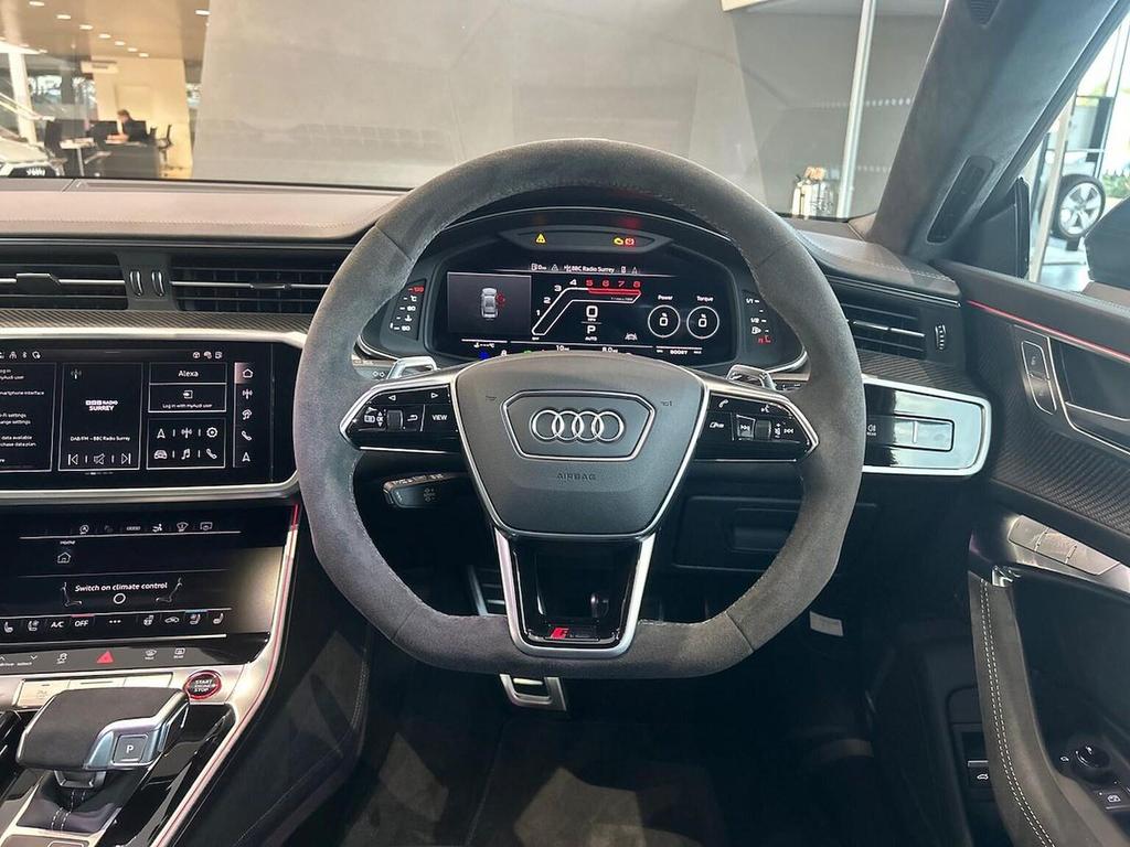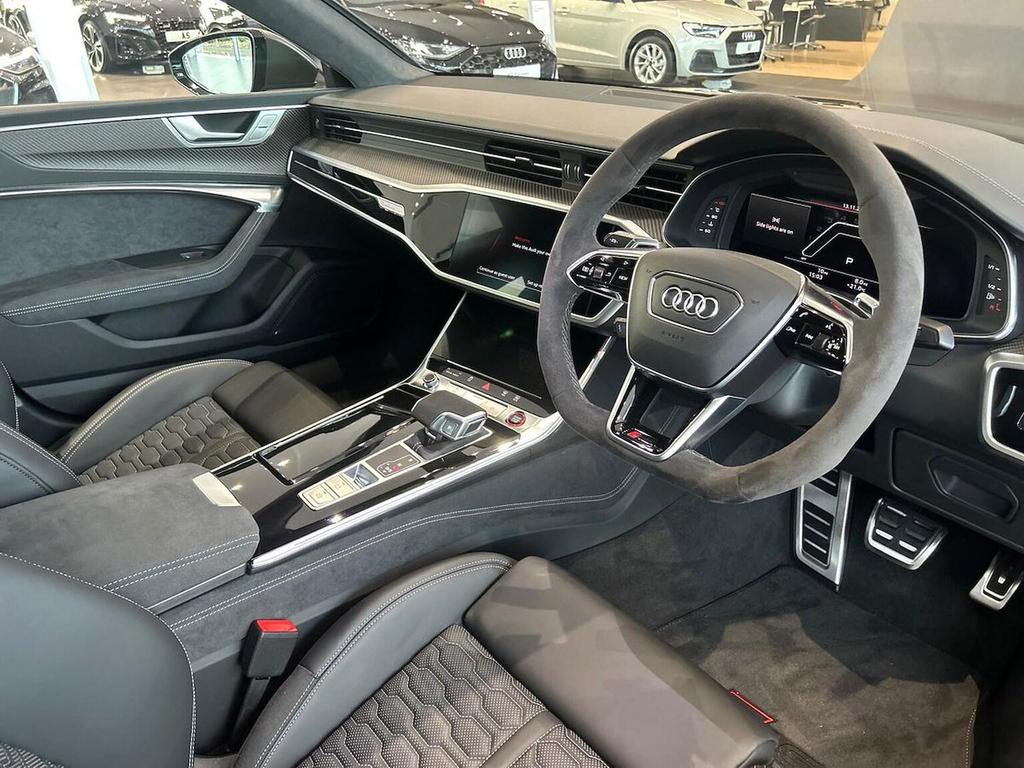 Audi RS7 4.0 TFSI V8 Performance Carbon Black Sportback Tiptronic quattro 22in Alloy Wheels - Matt Grey Gloss Turned Finish, Adaptive cruise control, Alarm, Alloy Wheels, Auto lights, Bluetooth Connection, Bluetooth Music Streaming, Climate Control, Digital cockpit, Electric Door Mirrors, Electric Seats, Front & Rear Parking Sensors, Front-facing Camera, Heated Seats, Heated Windscreen, LED Headlights, Leather Interior, Power Operated Tailgate, Power Steering, Rain sensor wipers, Rear-facing Camera, Tinted Glass, USB Connection, Voice control, Wireless mobile phone.