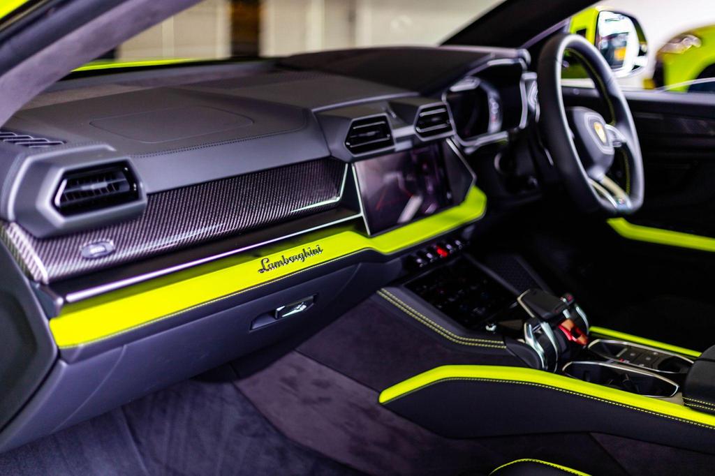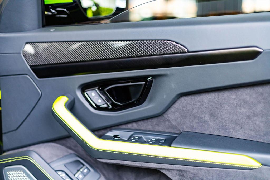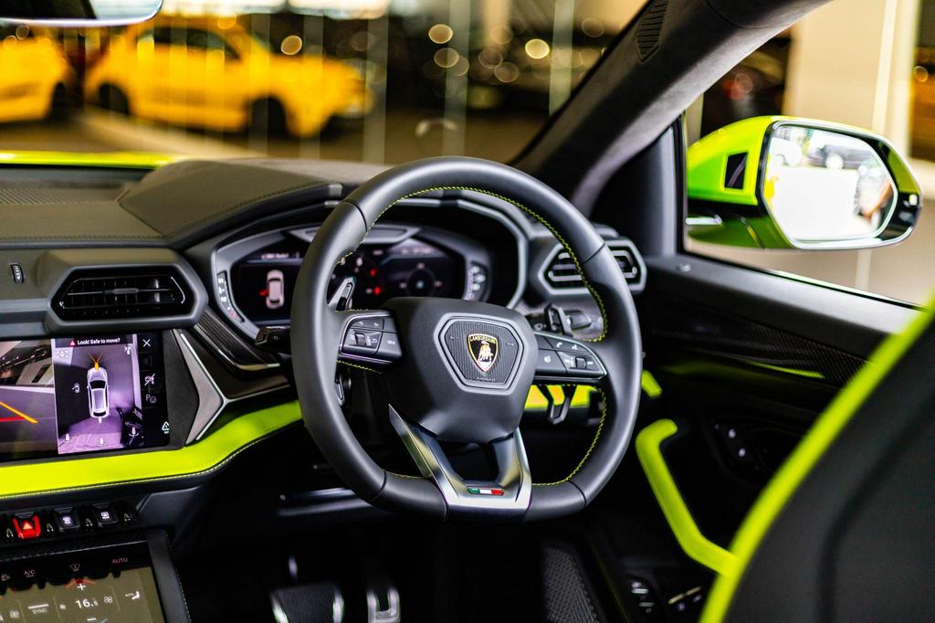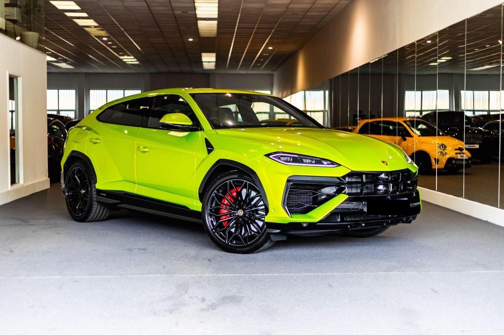 Lamborghini Urus 4.0 V8 BiTurbo 25.9kWh SE Auto 4WD Panoramic Sunroof 23" Galanthus shiny black alloy wheels , Green brake calipers, Ad personal Sportive leather interior with special trim , Optional Stitching on Steering Wheel , Contrast Stitching option , Small Interior shiny carbon fiber pack - Urus, Bang and Olufsen sound system , Dark Package ,Parking assistance with remote park assist pack, Black anodized treatment with Laser Engraving , Heated sports steering wheel in full leather with dark chrome bezel and red marker , Embroidered lamborghini shield on headrest , Ambient light pack - Urus , Ad personam rear spoiler in shiny black , Matt black exhaust tailpipes , Connect vehicle tracking system , Acoustic privacy glass and heat insulated glass , Ad personam door handles in shiny black , Heated rear seats , Heated and heat reflective windscreen ,