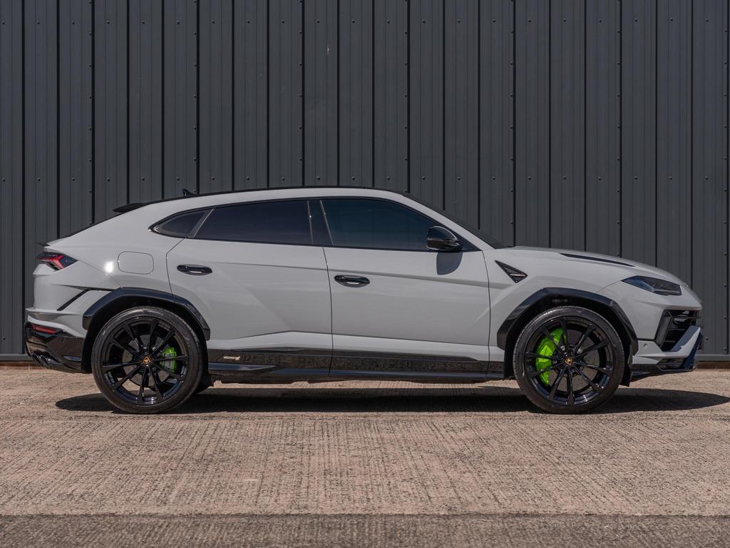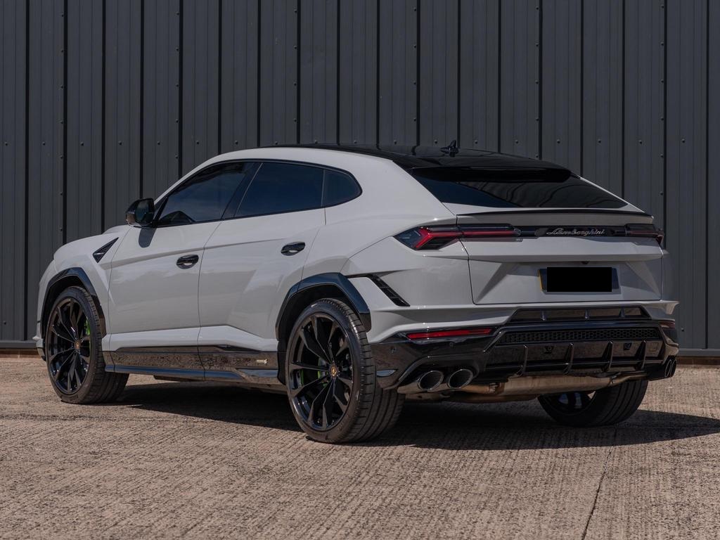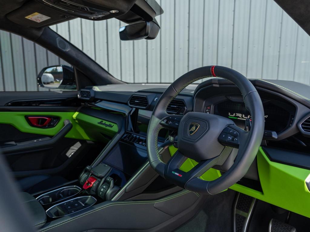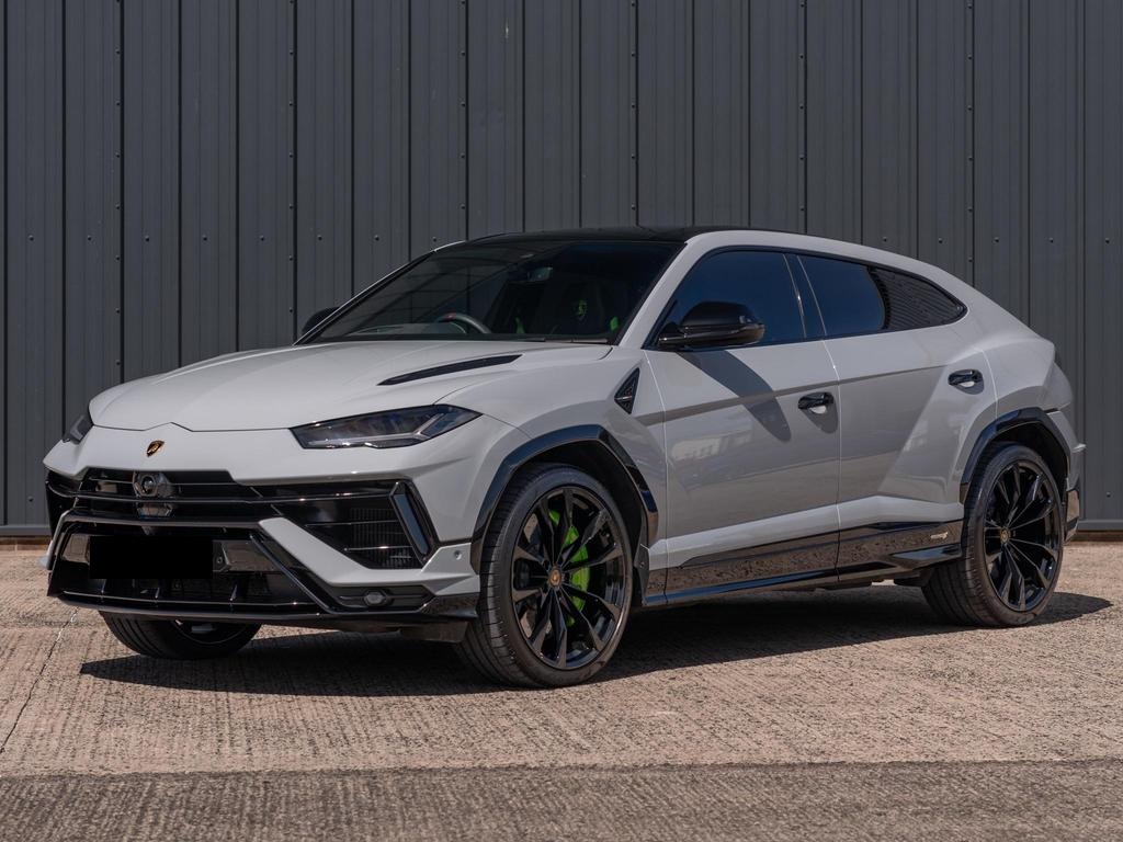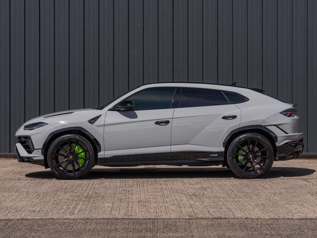 Lamborghini Urus 4.0 V8 BiTurbo S Panoramic Sunroof 23" Taigate Alloy Wheels, Wheels Finished in Gloss Black, Verde Painted Calipers, Grigio Hati Exterior Paint, Paint Protection Film (PPF) Applied To Whole Car, Style Package in High Gloss black, Bonnet Air Vents in High Gloss Black, Mirror Housings in High Gloss Black, Black Chrome Exhaust Tips, Panoramic Roof, Acoustic and Heat Insulated Privacy Glass, Advanced 3D Bang and Olufsen Sound System, Lamborghini ANIMA with Off Road Modes, Bicolour Sportivo Leather Interior in Nero Ade, Verde Fauns Contrast Interior Colour, Verde Fauns Contrast Stitching, Embroidered Lamborghini Shield on Headrest in Verde Fauns, Full Electric Front Seats with Massage Function, Ventilated & Heated Front Seats, Sports Steering Wheel in Full Leather with Dark Chrome Bezel with Red 12 O'Clock Marker, Verde Fauns Seat Belts, Floor Mats with Leather Piping and Double Stitching in Verde Fauns, Alcantara Headlining, Interior Dark Package, Black Anodised Treatment on Aluminium Inserts, Inserts in Black Piano Finish, Interior Door Handles in Rosso Efesto, Park Assistance Package with Remote Park Assist, DAB Digital Radio, Heads Up Display, Lamborghini Connect Vehicle Tracking System, Electrical Trailer Towing, Soft Close Doors, Power Closing Tailgate, Ambient Light Package.