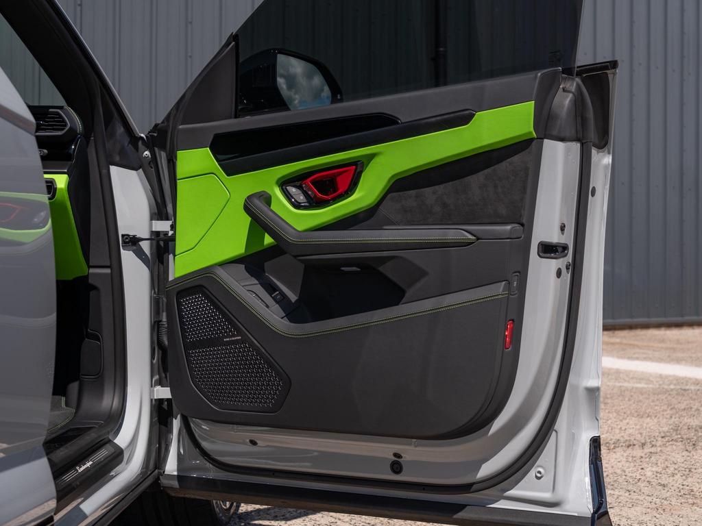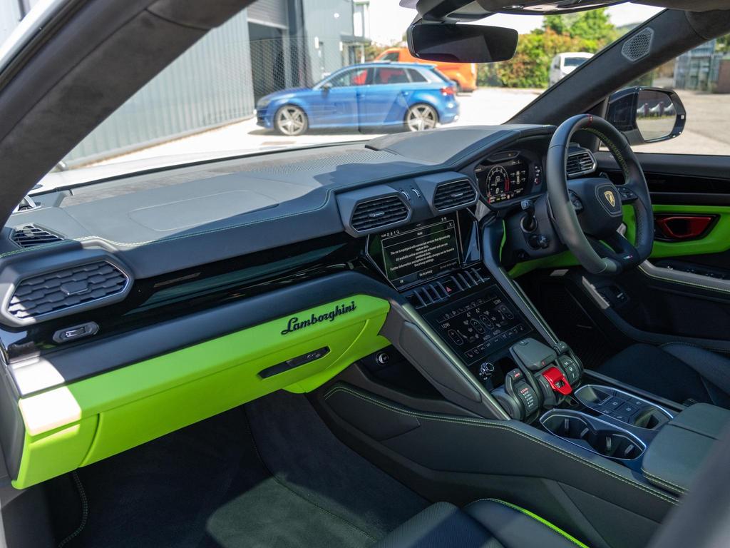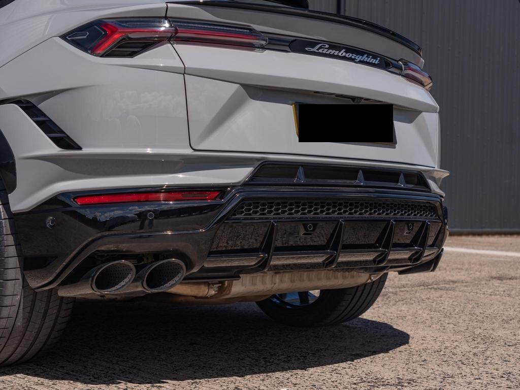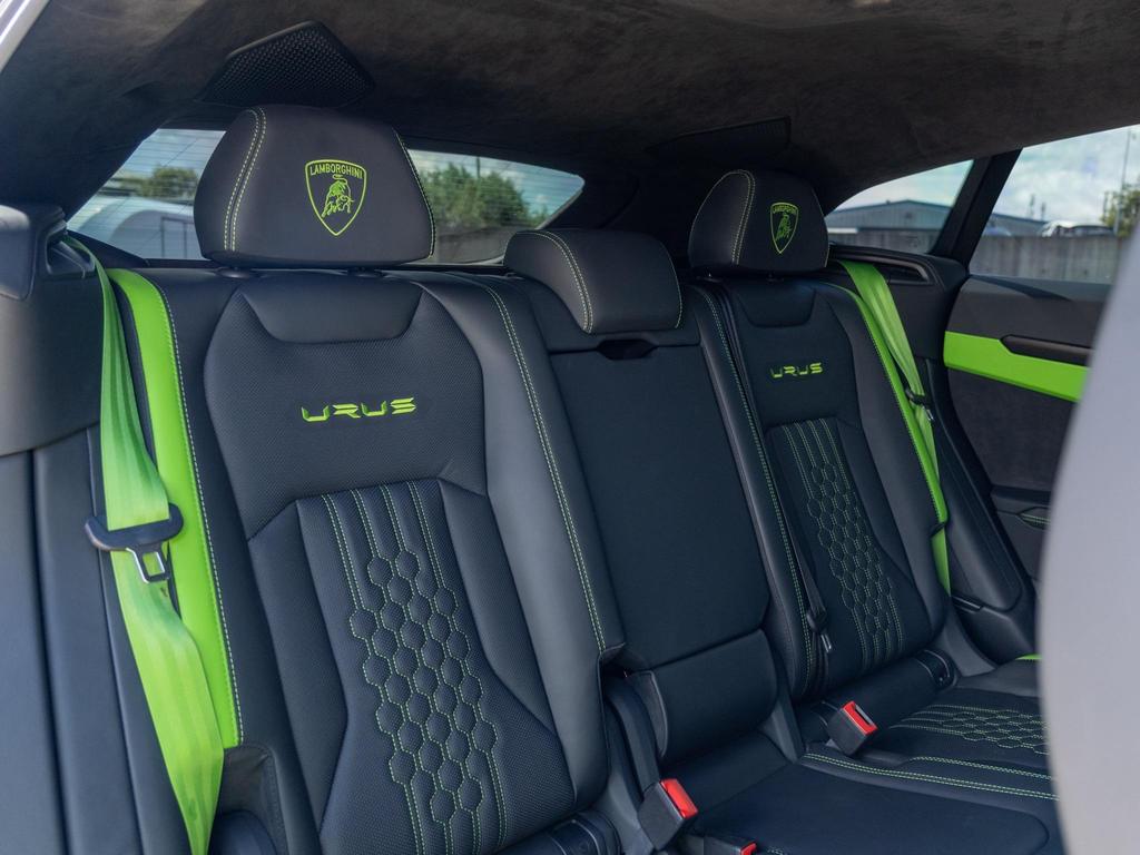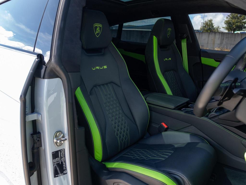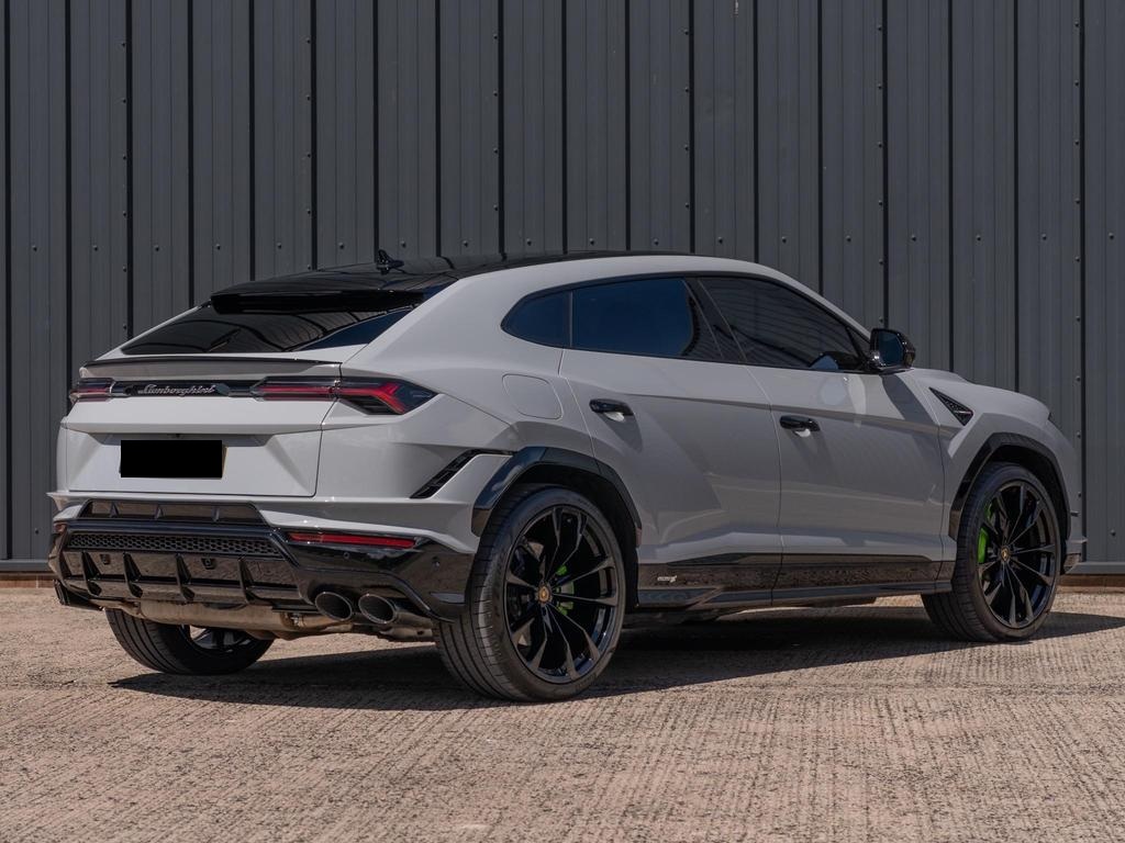 Lamborghini Urus 4.0 V8 BiTurbo S Panoramic Sunroof 23" Taigate Alloy Wheels, Wheels Finished in Gloss Black, Verde Painted Calipers, Grigio Hati Exterior Paint, Paint Protection Film (PPF) Applied To Whole Car, Style Package in High Gloss black, Bonnet Air Vents in High Gloss Black, Mirror Housings in High Gloss Black, Black Chrome Exhaust Tips, Panoramic Roof, Acoustic and Heat Insulated Privacy Glass, Advanced 3D Bang and Olufsen Sound System, Lamborghini ANIMA with Off Road Modes, Bicolour Sportivo Leather Interior in Nero Ade, Verde Fauns Contrast Interior Colour, Verde Fauns Contrast Stitching, Embroidered Lamborghini Shield on Headrest in Verde Fauns, Full Electric Front Seats with Massage Function, Ventilated & Heated Front Seats, Sports Steering Wheel in Full Leather with Dark Chrome Bezel with Red 12 O'Clock Marker, Verde Fauns Seat Belts, Floor Mats with Leather Piping and Double Stitching in Verde Fauns, Alcantara Headlining, Interior Dark Package, Black Anodised Treatment on Aluminium Inserts, Inserts in Black Piano Finish, Interior Door Handles in Rosso Efesto, Park Assistance Package with Remote Park Assist, DAB Digital Radio, Heads Up Display, Lamborghini Connect Vehicle Tracking System, Electrical Trailer Towing, Soft Close Doors, Power Closing Tailgate, Ambient Light Package.