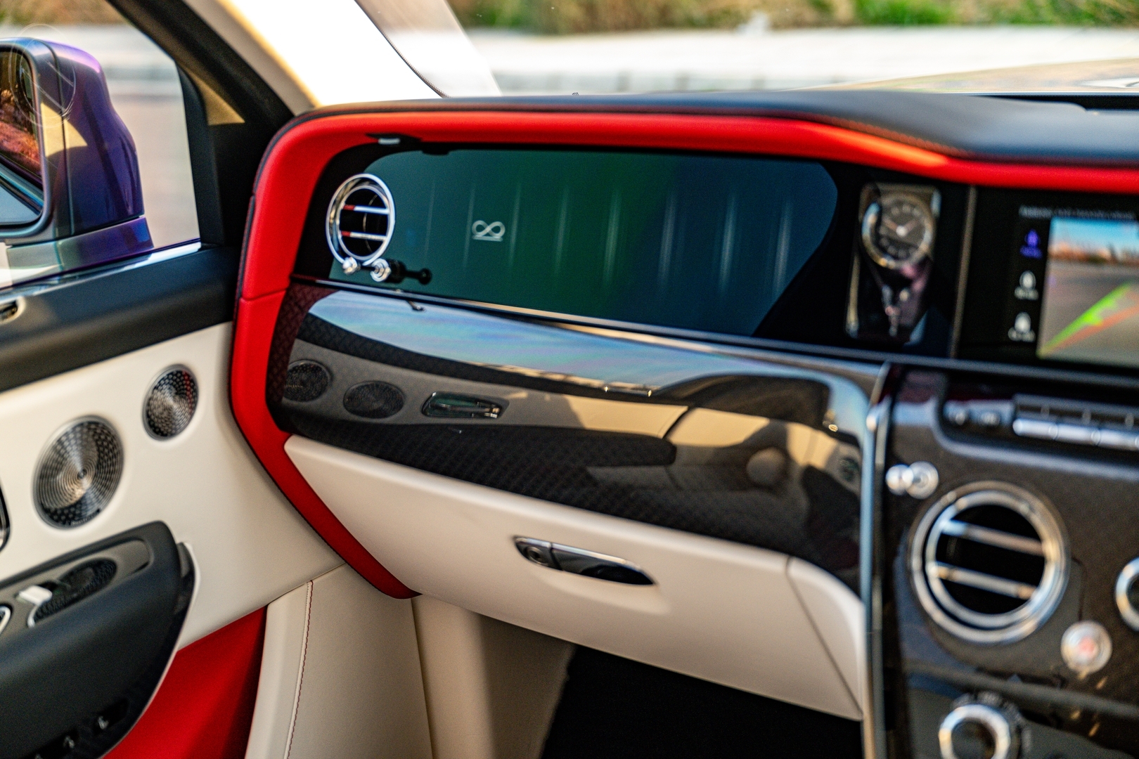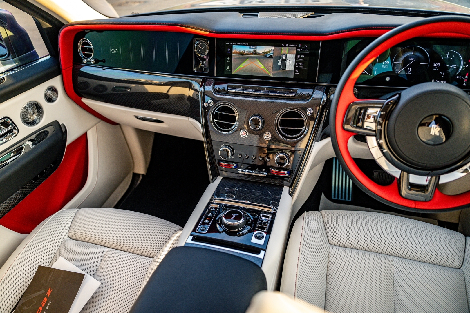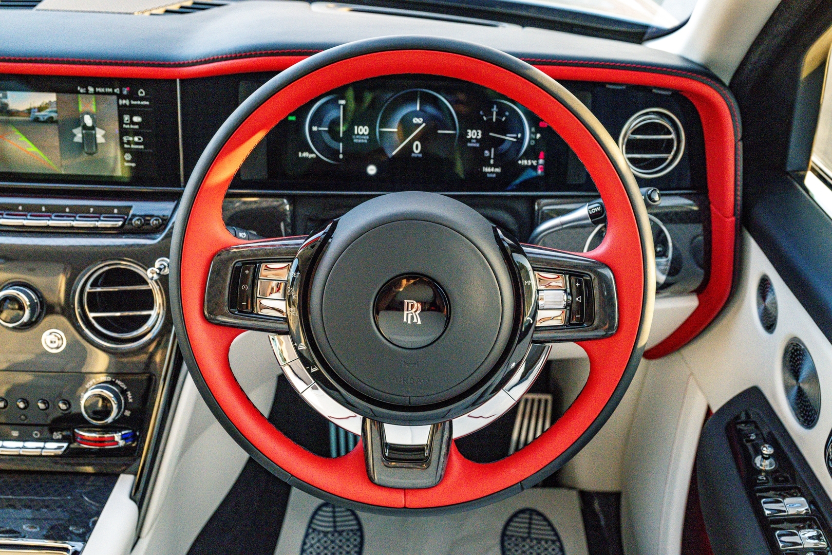 Rolls-Royce Cullinan Series II 6.75 V12 Black Badge 23" Part Polished Black Badge Alloy Wheels , Red Brake Calipers ,Black Badge Technical Fibre , Rear Theatre Configuration , Dark Chrome Spirit Of Ecstasy , Uplit Spirit Of Ecstasy , Head Up Display , Illuminated Fascia , Black Chrome Horizon Line , Technical Fibre Treadplate Surrounds , SOE Embossed On Doors , Lounge Seat , Phoenix Red/Black Thicker Two Tone Steering Wheel , Front Ventilated Seats , Front Massaging Seats , Rear Seat Headrest Cushions , Extended High Gloss Veneer , Single Coachline In Grace White , Illuminated Black Badge Treadplates , Active Cruise Control , Driving Assistant , Contrast RR Monogram To All Headrests , Parking Assistant Plus , Universal Garage Door Opener , Phoenix Red Contrast Stitching , Comfort Entry System , Phoenix Red Contrast Piping , Rear Privacy Glass , Bespoke Interior Editing , High Beam Assistance , Apple CarPlay , Surround Camera System , Instrument Panel With Top Stitching , Loading Assistant , Front Paint Protection Film , Phoenix Red Signature Key.