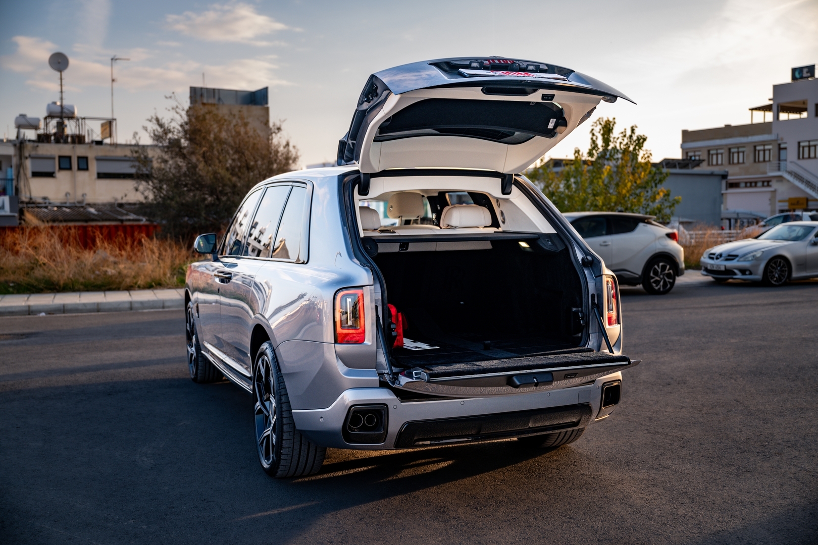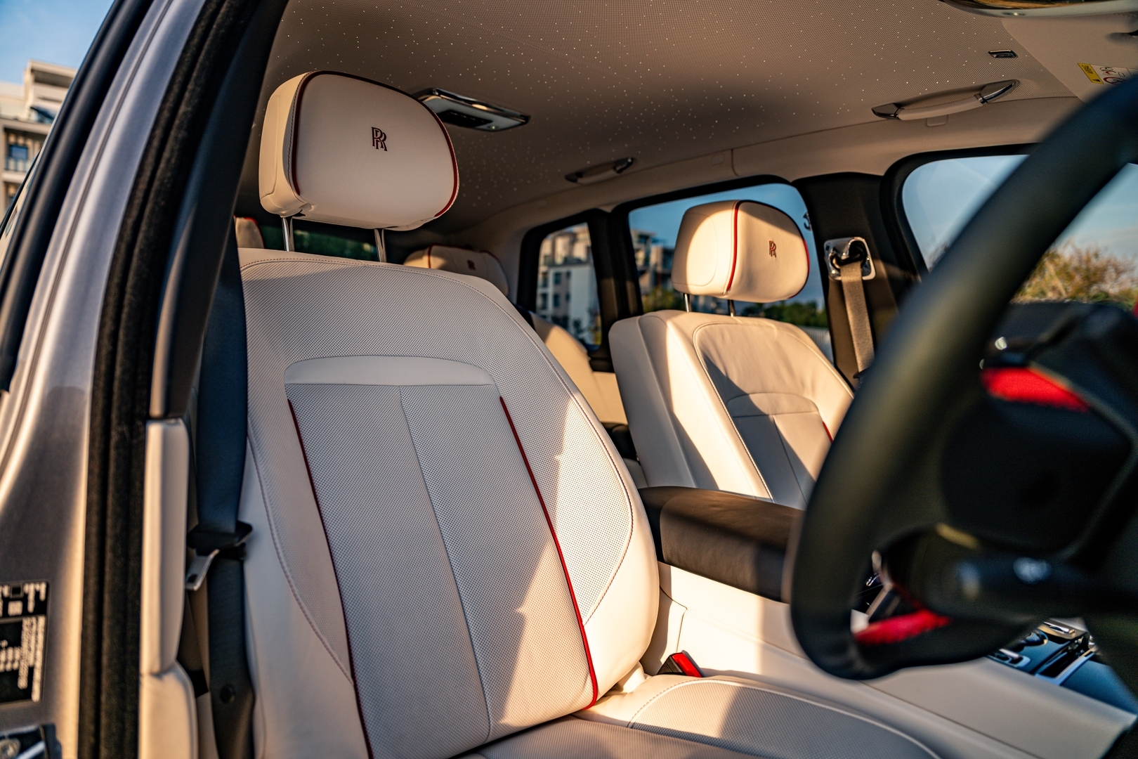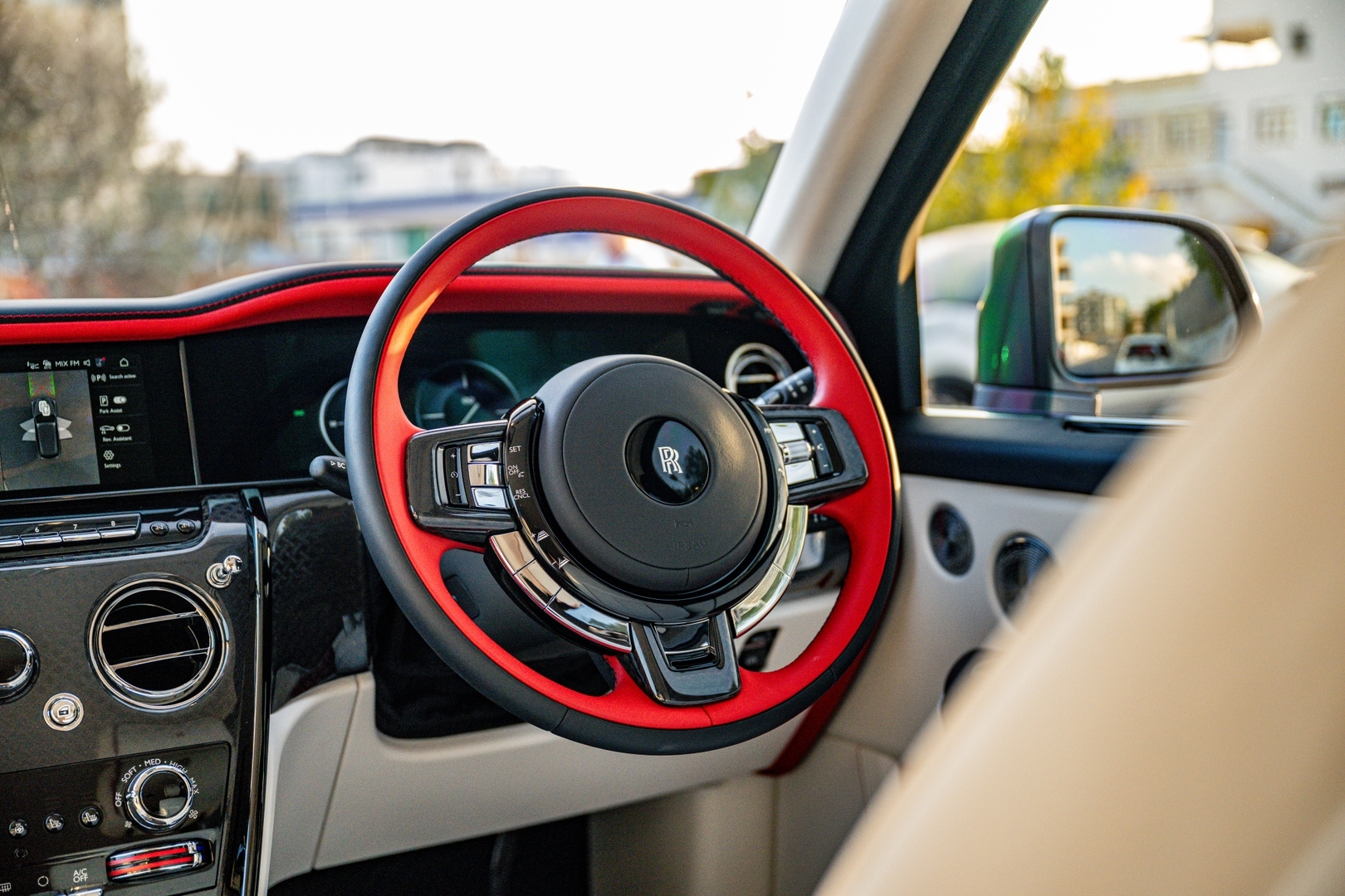Rolls-Royce Cullinan Series II 6.75 V12 Black Badge 23" Part Polished Black Badge Alloy Wheels , Red Brake Calipers ,Black Badge Technical Fibre , Rear Theatre Configuration , Dark Chrome Spirit Of Ecstasy , Uplit Spirit Of Ecstasy , Head Up Display , Illuminated Fascia , Black Chrome Horizon Line , Technical Fibre Treadplate Surrounds , SOE Embossed On Doors , Lounge Seat , Phoenix Red/Black Thicker Two Tone Steering Wheel , Front Ventilated Seats , Front Massaging Seats , Rear Seat Headrest Cushions , Extended High Gloss Veneer , Single Coachline In Grace White , Illuminated Black Badge Treadplates , Active Cruise Control , Driving Assistant , Contrast RR Monogram To All Headrests , Parking Assistant Plus , Universal Garage Door Opener , Phoenix Red Contrast Stitching , Comfort Entry System , Phoenix Red Contrast Piping , Rear Privacy Glass , Bespoke Interior Editing , High Beam Assistance , Apple CarPlay , Surround Camera System , Instrument Panel With Top Stitching , Loading Assistant , Front Paint Protection Film , Phoenix Red Signature Key.