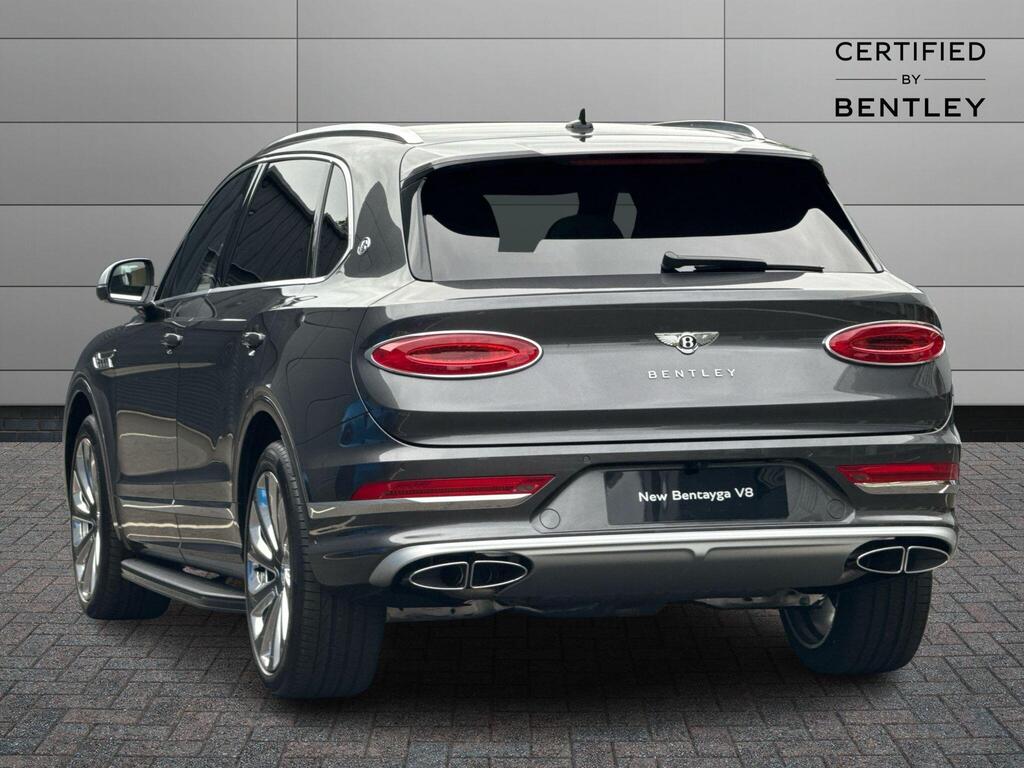 Bentley Bentayga 4.0 V8 Mulliner EWB Auto 4WD Panoramic Sunroof 22in Alloy Wheels - Mulliner - Grey Painted with Polished Pockets, Acoustic Heat-Insulating Front Screen, Bright Chrome Matrix Style Grille to Lower Bumper Apertures, Standard Brakes with Black Calipers,Mulliner Double Diamond Wing Vent, Bentley Airline Seat Specification, Diamond Milled Technical Finish to Centre Console, Four-Zone Air Conditioning, Mulliner Console Drinks Cooler, Steering Wheel - 3 Spoke Single Tone Indented Hide Trimmed - Heated, Veneer - Grand Black with Mulliner Overlays and Aluminium Console, Veneered Picnic Tables, Naim for Bentley, Battery Charger, 3D Surround View, Blind Spot Warning, Driver Assist Profile Switch, Front and Rear Park Distance Control, Lane Departure Warning, My Bentley Remote Park Assist.