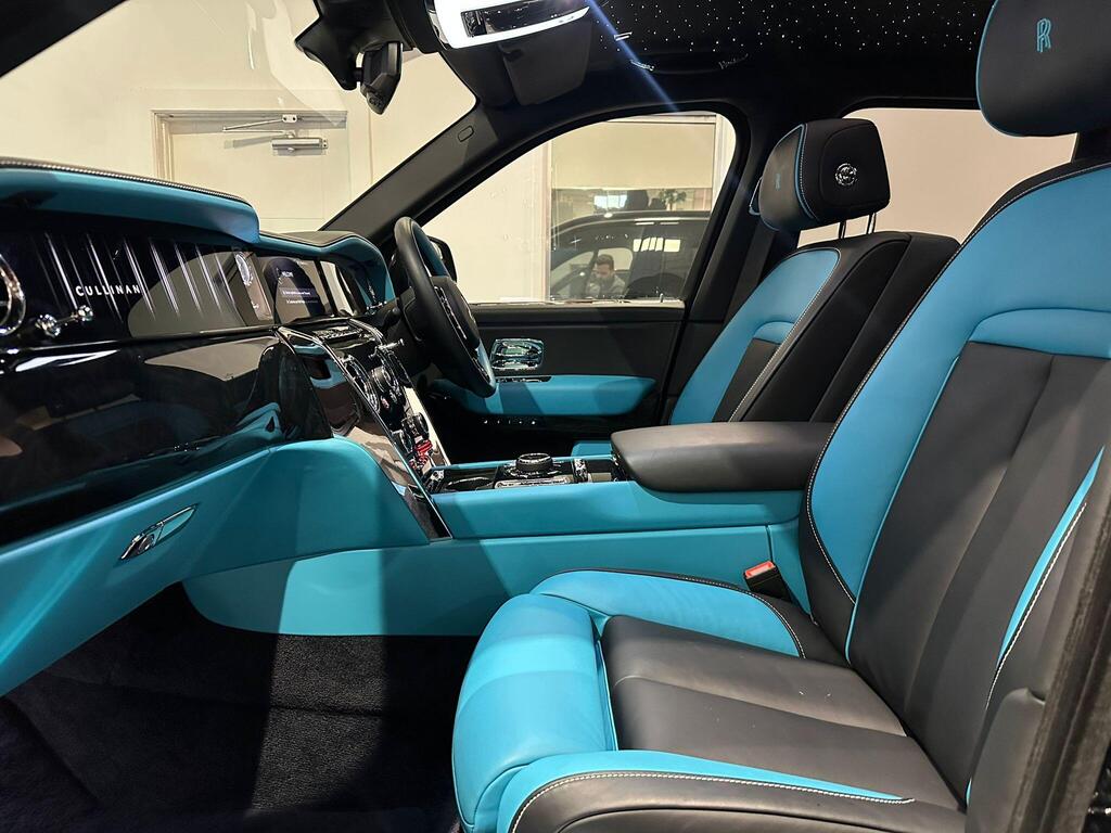 Rolls-Royce Cullinan Series II 6.75 V12 Auto 4WD 23” Part Polished 7 Spoke Alloys, Black Diamond, Black , Bespoke Interior Editing , Coloured Piping, Cullinan Package, Shooting Star Headliner, Rear Theatre Configuration, Picnic Tables, Rolls-Royce Bespoke Audio, Front Massage Seats, Front Ventilated Seats, RR Monogram Headrests, Driving Assistant, Active Cruise Control, Night Vision , Head Up Display, Illuminated Treadplates, Park Assistant, Polished Stainless Steel Package, Surround Camera System.
