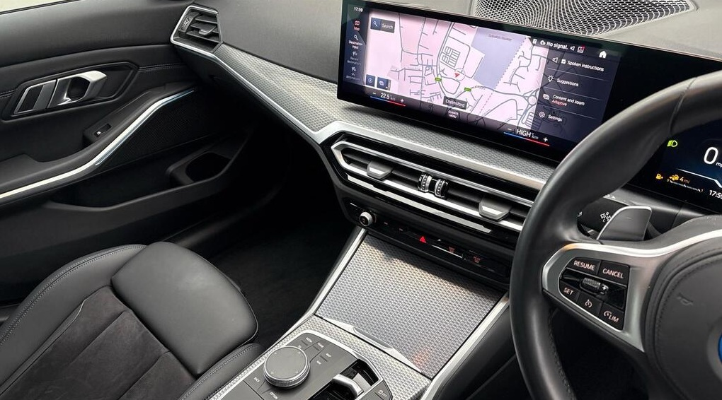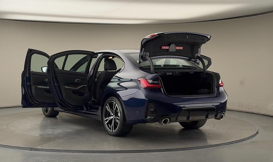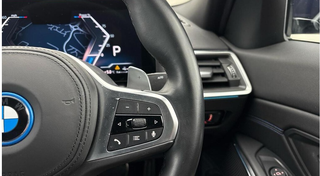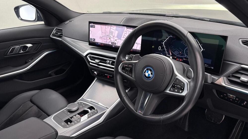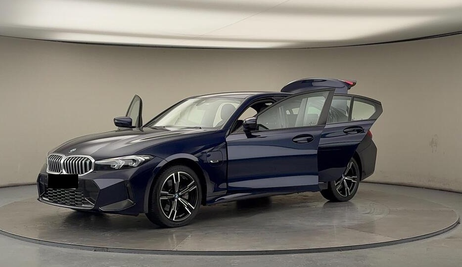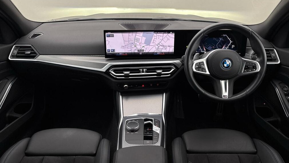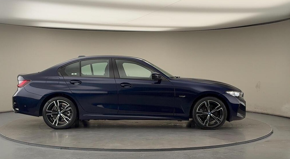 BMW 3 Series 2.0 330e 12kWh M Sport Auto xDrive 18 in Alloy Wheels ,Tanzanite Blue with Black Leather Interior |This car benefits from the following features: M Sports package, Auto Dip Exterior Mirrors, Parking Assist, M Aerodynamics package. The interior features of this car are: Sports seat, Heated Driver/Passenger Seats, M leather steering wheel, High Gloss Shadow Line, Anthracite Black Headlining. The technology and systems that this car has are as follows: Acoustic Glazing, Automatic Air Conditioning, DAB Tuner, Teleservices, Active pedestrian protection. Alcantara-Sensatec - Black with Blue Stitching.