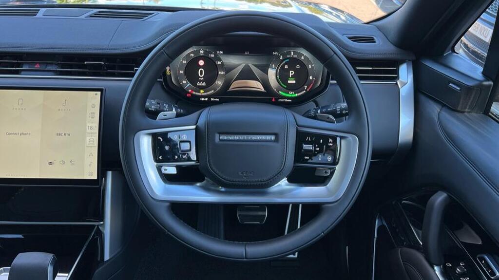 Land Rover Range Rover 3.0 P460e 38.2kWh SE Panoramic Sunroof 21-inch Style 5112 wheels in Gloss Black, over Ebony Windsor leather interior, and comes equipped with some brilliant features and optional extras, including, 20-way Heated and Cooled front seats with Memory function, Heated rear seats, Three-zone Climate Control, Meridian Sound System, Privacy Glass, Sliding Panoramic Roof, Pixel LED Headlights, Keyless Entry, Adaptive Cruise Control, Lane Keep Assist, Blind Spot Assist, Front and Rear Parking Aids, 3D Surround Camera, Apple CarPlay and Android Auto, DAB Radio, Wireless Device Charging,Soft Door Close, Steering Wheel - Heated, Meridian Sound System.