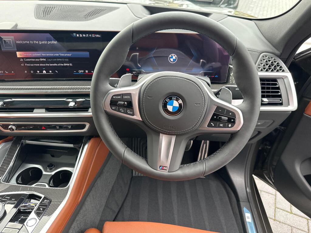 BMW X6 3.0 40d MHT M Sport xDrive Panoramic Sunroof 22" Double Spoke 742 M Jet Black Alloy Wheels, Front & Rear Air Suspension, Electric Folding Towbar, Iconic Glow Kidney Grille, High Gloss Shadowline Roof Rails, Crafted Clarity Controls, Carbon Fibre Interior Trim, M Sport Package Pro, Comfort Pack, Technology Pack & Comfort Plus Pack.Front Heated Seats, M Sport Leather Steering Wheel, Attentiveness Assistant, Cruise Control with Braking Function, Parking Assistant Pro, Harman Kardon Surround Audio Sound System.