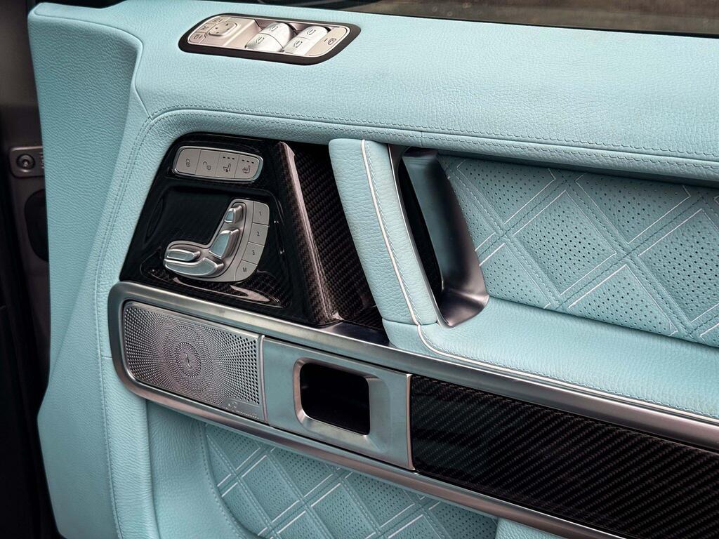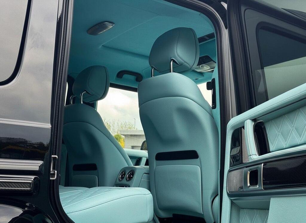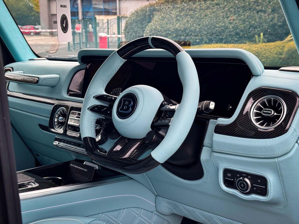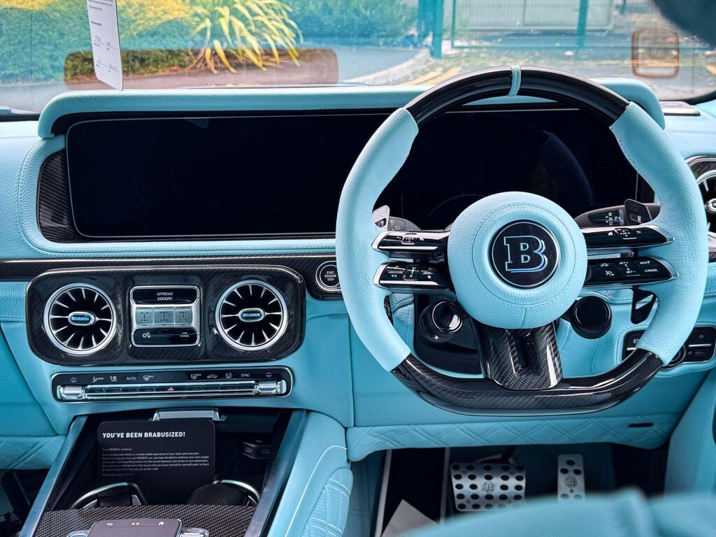 Mercedes-Benz G Class 4.0 G63 V8 BiTurbo MHEV AMG SpdS+9GT OFFICIAL BRABUS G800 Panoramic Sunroof 24” Platinum Edition Forged Alloy Wheels And A BRABUS Branded Braking System With Tiffany Blue Lettering, BRABUS 800hp PowerXtra Engine Conversion, Handcrafted Fine Leather Option Upholstered In Tiffany Blue Quilted Hexagonal Design, Consisting Of Perforation Inserts, And Tiffany Piping, Including Dashboard Upper Section, Door Card Inserts, Rear Door Cover And Interior Accents Upgrade. The Exterior Of The Vehicle Benefits From A Full Updated Aerodynamics Package Including: Exterior BRABUS Widestar Package With Illuminated BRABUS Wide Flared Arches, BRABUS Carbon Front Bumper Corner Inserts, Brabus Carbon Rear Bumper Corner Inserts, BRABUS Front And Rear Carbon Arch Vents, BRABUS Illuminated Radiator Grille Logo With Dark Chrome Slats, BRABUS Carbon Radiator Grille Surround, Integrated Two Way LED Lighting For Side Steps, BRABUS Carbon Roof Light Bar, BRABUS Carbon Bonnet Attachment, BRABUS Carbon Rear Spoiler, BRABUS Carbon Rear Wheel Cover, BRABUS Interior Branding Package Including BRABUS Door Pins, BRABUS Aluminium Pedal Pads, BRABUS RGB Illuminated And Colour Changing Door Entrance Panels And BRABUS Carbon Engine Cover. This BRABUS Also Comes With The Enhanced G800 Engine Power Programme, BRABUS Black Valve Controlled Switchable Sports Exhaust System And BRABUS BoostXtra Pack For The Ultimate Performance And Sound. Finished With BRABUS G800 Exterior Branding Package And Gloss Black Monoblock Z