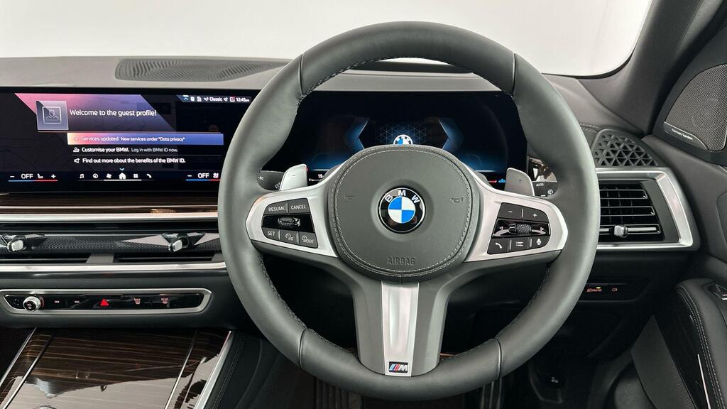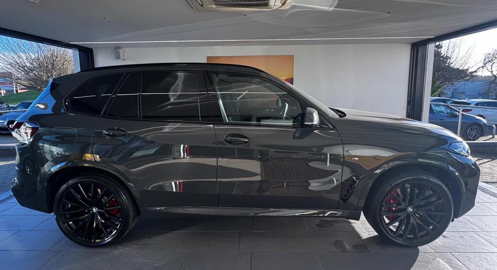 BMW X5 3.0 30d MHT M Sport Steptronic xDrive Panoramic Sunroof 22" Jet Black Double Spoke Alloy Wheels, M Sport Package Pro: M Adaptive Suspension, M Sport Brakes with Red Calipers, BMW Individual Lights Shadow Line. Towbar, Iconic Glow Kidney Grille, Sun Protection Glass, Travel Pack: Sky Lounge Panoramic Glass Sunroof, Rear Side Window Blinds, Extended Storage Contents, Travel and Comfort System. Technology Pack: Parking Assistant Pro, Harman Kardon Surround Sound Audio System, Live Cockpit Pro with Head up Display. Comfort Pack: Heated and Cooled Cupholder, Front and Rear Heated Seats, Heat Comfort System, Comfort Access, Electric Front Seats with Driver Memory, Front Lumbar Support, Folding Side Mirrors with Auto-dimming, Ambient Lighting, Adaptive LED Headlights, High-Beam Assistant.