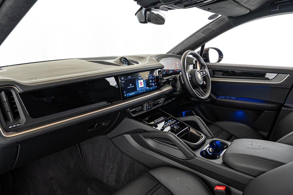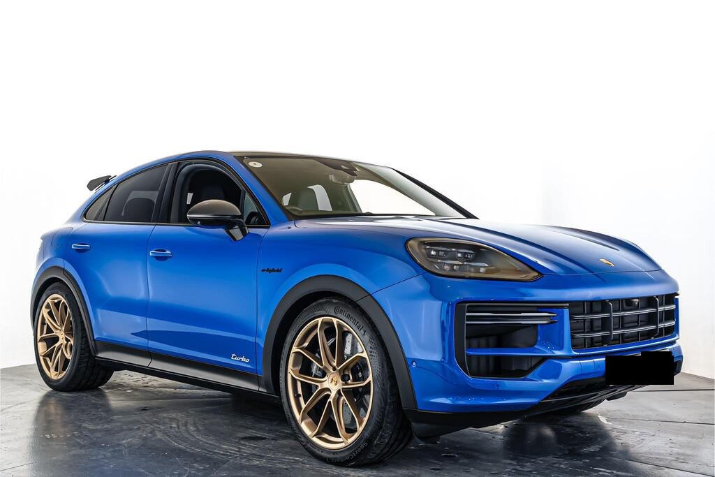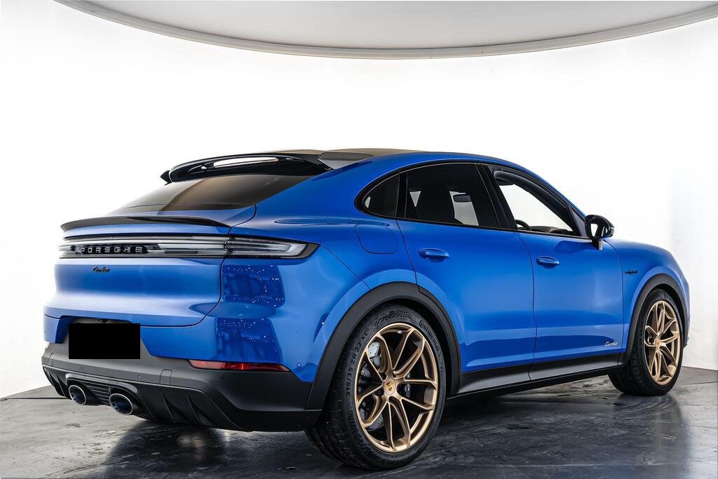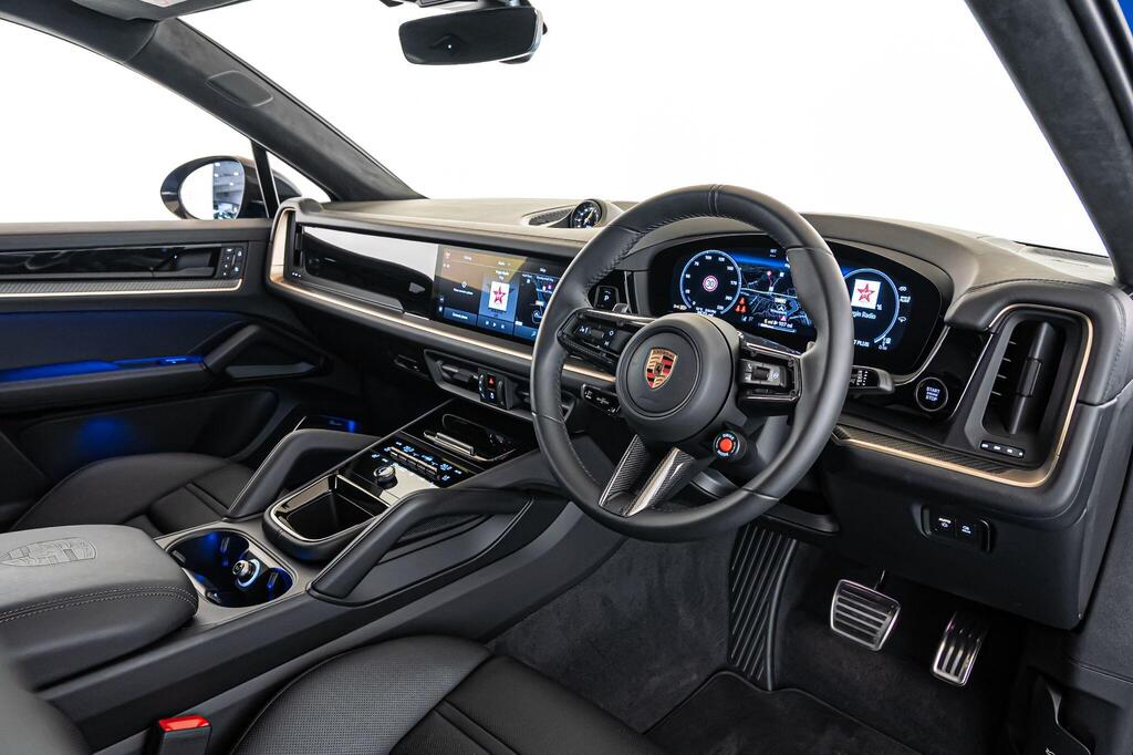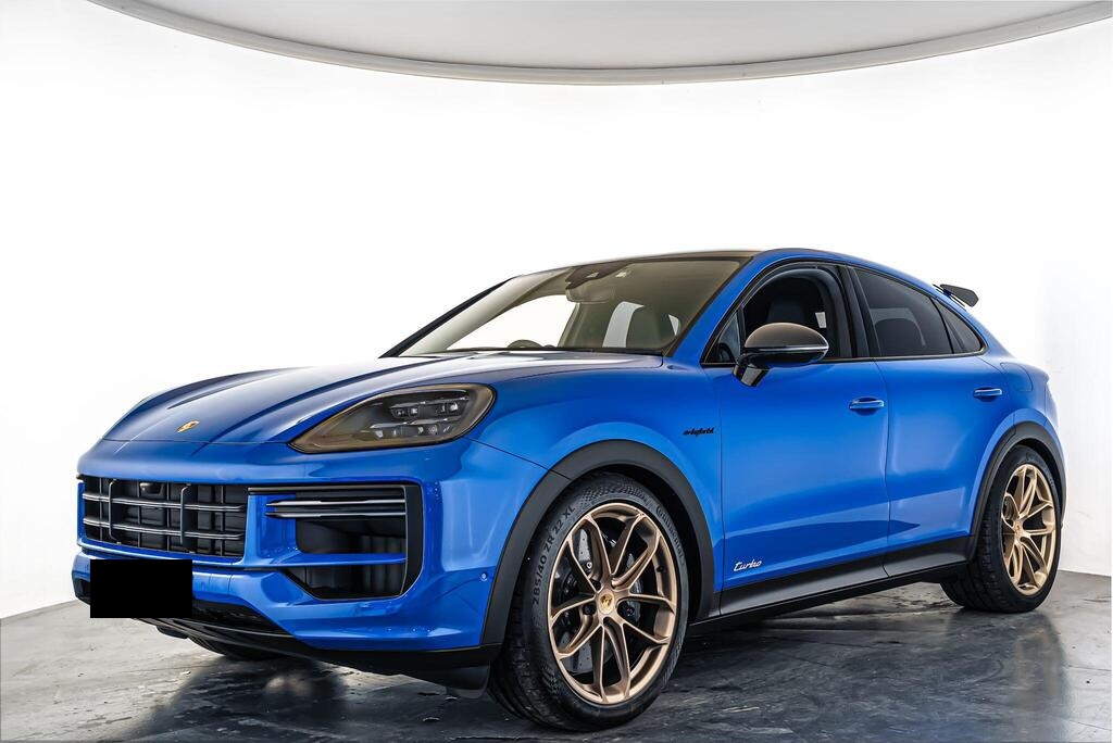 Porsche Cayenne 4.0 V8 E-Hybrid 25.9kWh Turbo TiptronicS 22" GT Design Satin Neodyme Gold Alloy Wheels with Carbon Ceramic Brakes, Carbon Fibre Roof, Rear Spoiler and Rear Diffuser with contrasting Black Leather Upholstery, Bordeaux Seat Belts, Grey Suede Headlining and a Matt Carbon Interior Package with Neodyme Accents,Gloss Black Branded Brake calibers, PDCC, Preporation Rear Seat Entertainment screens, Surround Cameras, GT Package, Sports Chrono with Mode Switch, Heated Multi Function Leather GT Steering Wheel with Carbon Fibre Insert,Adaptive Cruise Control, Burmester 3D High End Sound, DAB Radio, Apple Car Play, Keyless Entry and Start, Heated and Ventilated 18 Way Adaptive Front Seats with Memory, Lane Assist Remote Park Assist, Comfort Access, Courtesy Lights, LED Tail Lights, Sports Chrono, Illuminated Entry Guards, Thermally and Noise Insulated Glass, Privacy Glass, Heated Screen, Aluminium Fuel Cap, Embossed Head Rests and Centre Arm Rest.