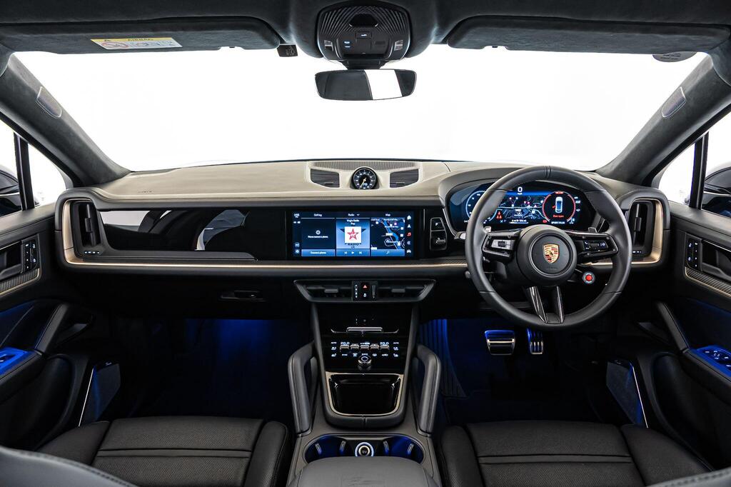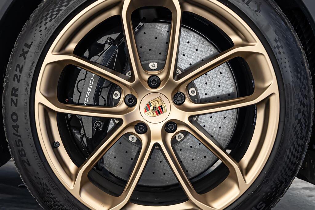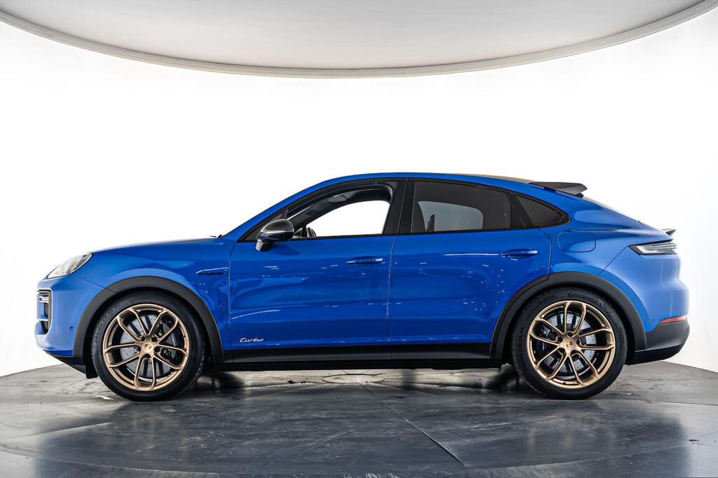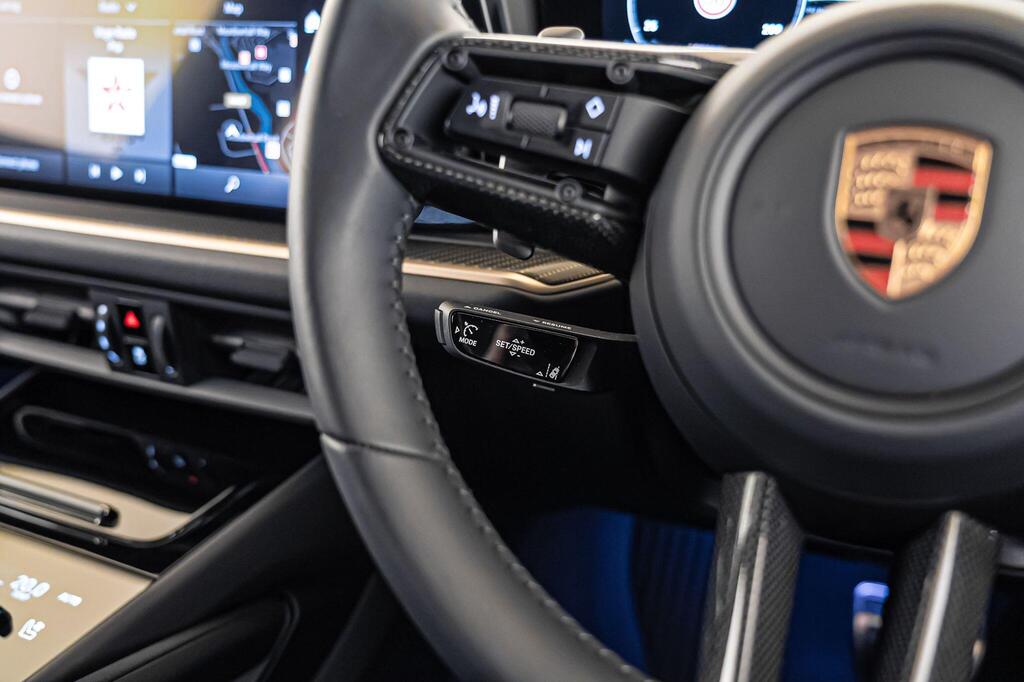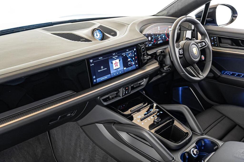 Porsche Cayenne 4.0 V8 E-Hybrid 25.9kWh Turbo TiptronicS 22" GT Design Satin Neodyme Gold Alloy Wheels with Carbon Ceramic Brakes, Carbon Fibre Roof, Rear Spoiler and Rear Diffuser with contrasting Black Leather Upholstery, Bordeaux Seat Belts, Grey Suede Headlining and a Matt Carbon Interior Package with Neodyme Accents,Gloss Black Branded Brake calibers, PDCC, Preporation Rear Seat Entertainment screens, Surround Cameras, GT Package, Sports Chrono with Mode Switch, Heated Multi Function Leather GT Steering Wheel with Carbon Fibre Insert,Adaptive Cruise Control, Burmester 3D High End Sound, DAB Radio, Apple Car Play, Keyless Entry and Start, Heated and Ventilated 18 Way Adaptive Front Seats with Memory, Lane Assist Remote Park Assist, Comfort Access, Courtesy Lights, LED Tail Lights, Sports Chrono, Illuminated Entry Guards, Thermally and Noise Insulated Glass, Privacy Glass, Heated Screen, Aluminium Fuel Cap, Embossed Head Rests and Centre Arm Rest.