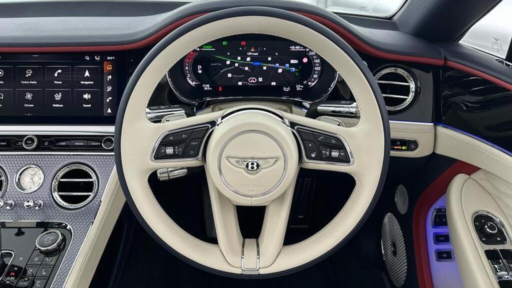 Bentley Continental 4.0 V8 Ultra-Performance 25.9kWh GTC Mulliner 22in Alloy Wheels - Mulliner Painted and Polished with Self Levelling Wheel Badge, Sports Exhaust, Front Seats - Electric 12-Way Adjustment with Heating and Two Memory Functions, Multi-zone Automatic Climate Control System, Steering Wheel - 3 Spoke Duo Tone Hide Trimmed - Heated, 3D Surround Cameras, Bentley Analogue Clock with Plain Bezel, Blind Spot Warning, Brake Pad Wear Indicator, Collision Prevention Assist , Driver Assist Environmental Display, Front and Rear Park Distance Control, Intelligent Park Assist, My Bentley Remote Park Assist, Particle Matter Sensor, Pre-Crash - Rear, Reversing Camera with Graphic Screen Representation, Bentley Rotating Display, Satellite Navigation, Wireless Android Auto, Wireless Apple CarPlay.