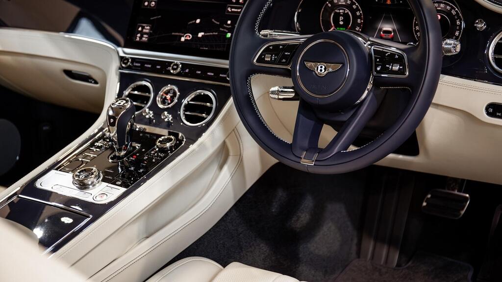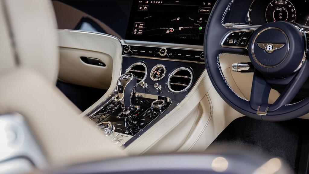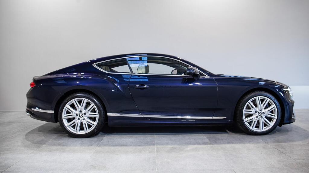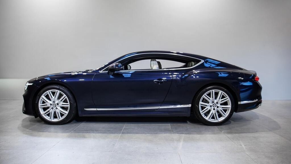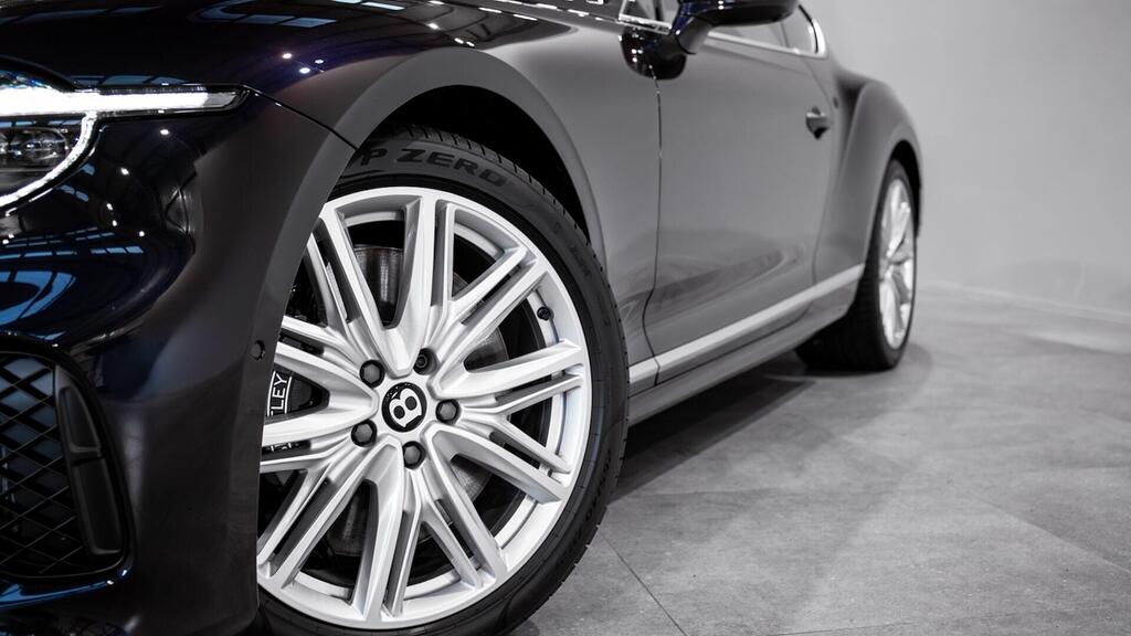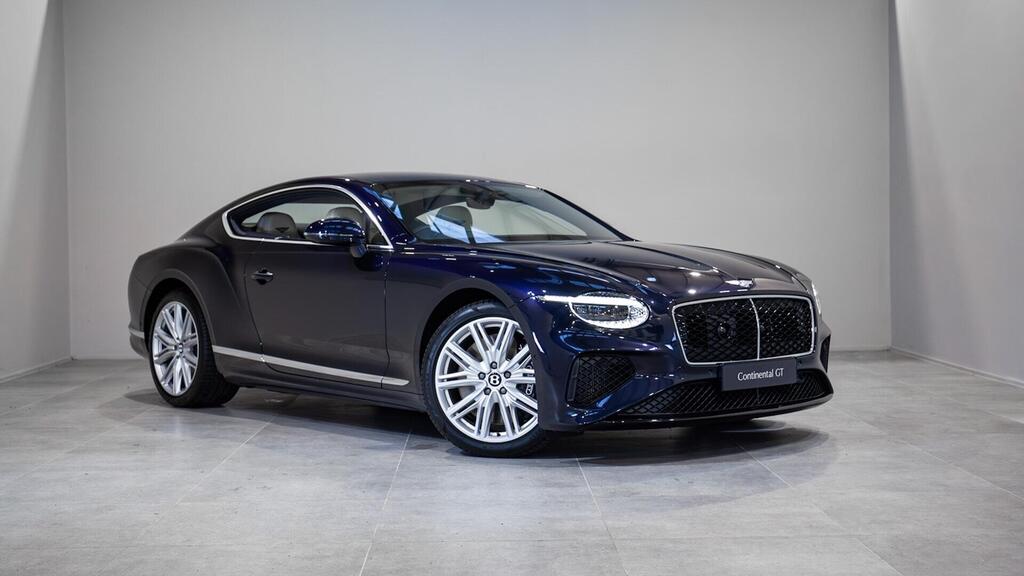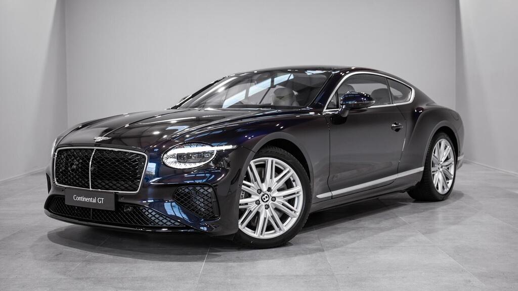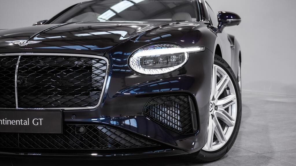 Bentley Continental GT 4.0 V8 Hybrid Touring Specification 21" Ten Twin-Spoke Wheels in Black, Bentley Wings Welcome Lamps, Ventilated Front Seats with Massage Function , Contrast Stitching, Colour Specification , Embroidered Bentley Emblems , Imperial Blue Veneer by Mulliner , Bentley Dynamic Ride , First Aid Kit and Warning Triangle , Top View Camera , Night Vision , Head-Up Display , Adaptive Cruise Control , Touring Specification , Front Seat Comfort Specification , Bentley Rotating Display .