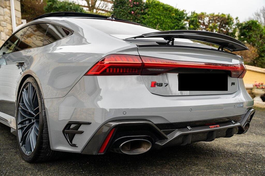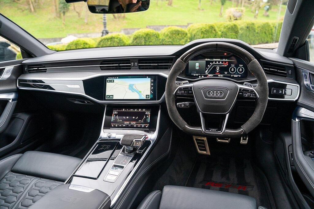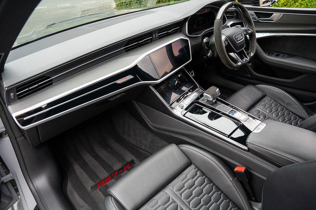 Audi RS7 4.0 TFSI V8 Vorsprung Sportback Tiptronic quattro Panoramic Glass Sunroof 22in Alloy Wheels - Titanium Matt Gloss Turned Finish, Rear Sports Exhaust System - Black, 4-Way Electric Lumbar Support, 4-Zone Deluxe Automatic Climate Control, Comfort and Sound Package, Electrically Adjustable Front Seats with Driver Memory Function, Front Seat Ventilation, Heated Front and Rear Seats, Audi Drive Select with Efficiency, Audi Virtual Cockpit with RS Specific Design and 12.3in Display, Camera Based Traffic Sign Recognition, Direct Tyre Pressure Monitoring System, Head-Up Display, Lane Departure Warning, Voice Control System, Audi Connect with Amazon Alexa Integration.